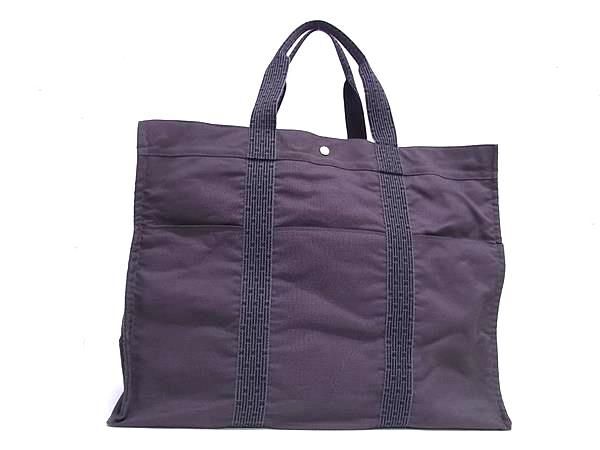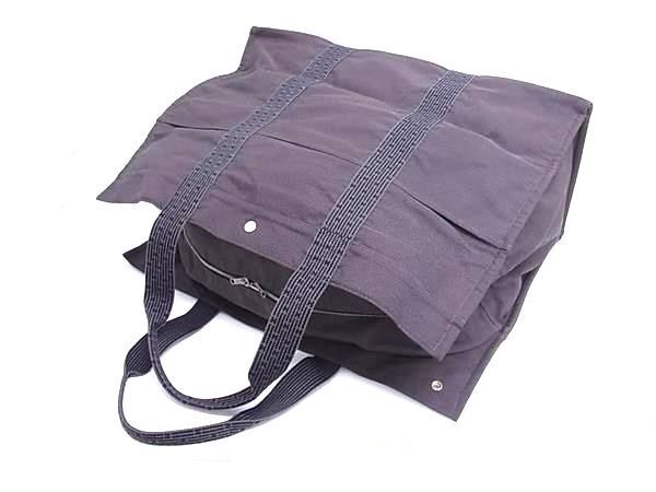1円 HERMES エルメス エールライン TGM キャンバス シルバー金具 ハンドバッグ トート ショルダー 肩掛け ブラック系 FS8026
