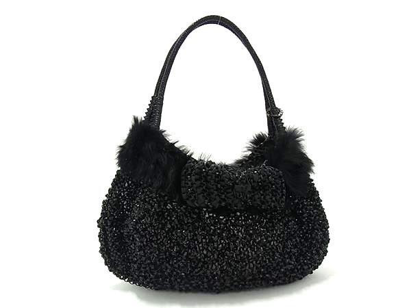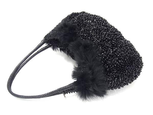 1円 ■美品■ ANTEPRIMA アンテプリマ ワイヤーバッグ PVCワイヤー×ファー ハンドバッグ トートバッグ レディース ブラック系 FN8882
