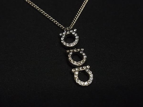 1円 ■美品■ Salvatore Ferragamo フェラガモ ガンチーニ トリプル ラインストーン ネックレス アクセサリー シルバー系 BP6357