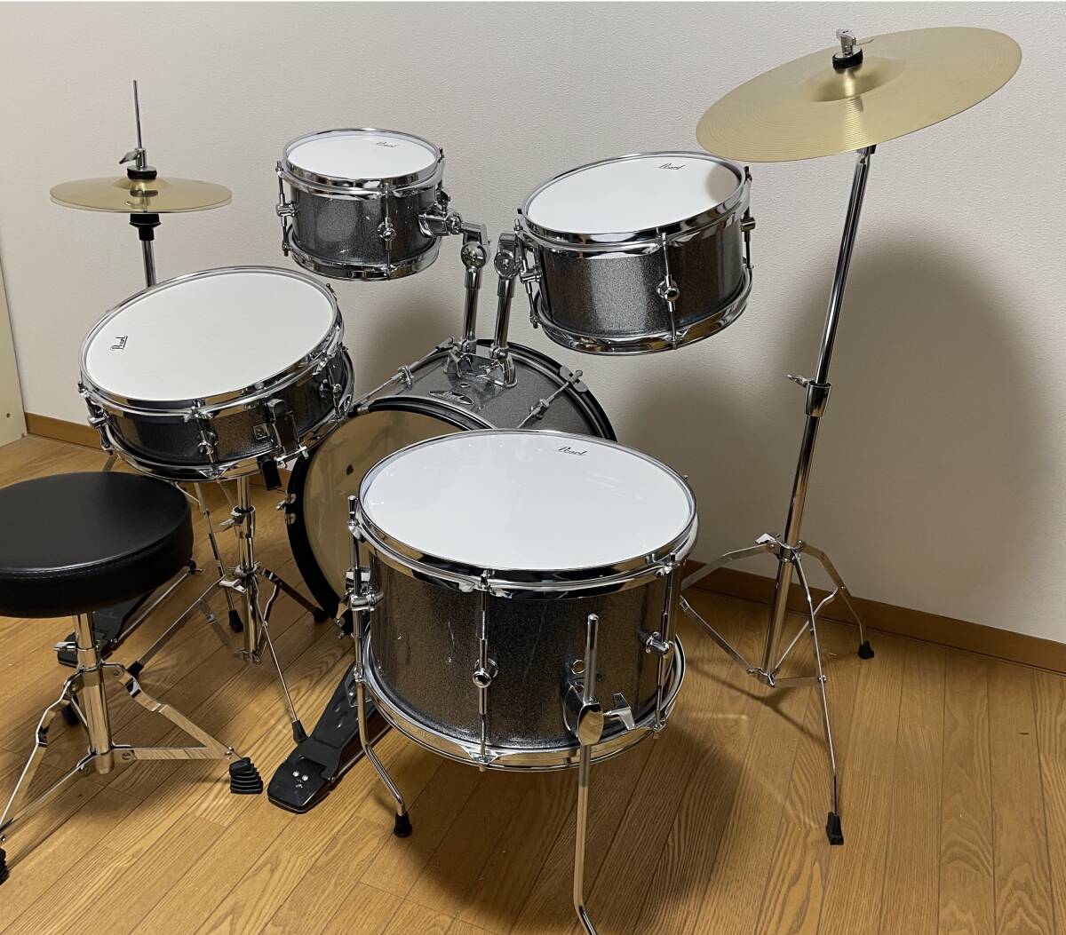 | 商品の詳細 | ・3年ほど前に、新品で購入しました。 ・当時、使用したのは5回程度。1回に2時間程度でした。 練習と演奏が終了した後、使用せず保管していましたが、今回、楽器整理のため出品します。 ・全体的にきれいな状態です。 ・気になる点は、ハイハットのシャフトの上部が少し揺れます。故障ではなく構造的なものだと思います。具体的には、シャフトの連結部分は可動する構造になっているためだと思います。 ・バスドラム・ペダルにキズがあります。フロアタム・ヘッドにもキズがあります。 ・スネアドラム・ヘッドにも叩いた跡が見られます。 ・その他にもキズや汚れがあります。見落としているキズや汚れもあると思います。 バスドラム・ペダルトとバスドラム・ぺダルの間に挟む小さなゴム片をなくしました。別途ゴムを、ホームセンターなどでご購ください。 <仕様は次のとおりです> ・バスドラム:16" x10"Bass Drum ・タムタム: 8"x5" Tom Tom 10"x5.5" Tom Tom ・フロアタム:13"x8" Floor Tom ・スネアドラム:12"x4" Snare Drum ・ハードウェア:ハイハットスタンド、スネアスタンド、シンバルスタンド、ドラムペダル、タムホルダーx2、ドラムスローン ・クラッシュシンバル:13" Crash Cymbal (Brass) ・ハイハットシンバル:10Hi-Hat Cymbals (Brass) ・カラー:708 Grindstone Sparkle ・ Pearl のサイトをご覧ください。 https://pearldrum.com/ja/products/drum-sets/roadshow-jr/roadshow-jr ・発送の場合は、分解して2個口にして、160サイズでお送りします。160サイズの2個分の合計として、2倍の料金になりますのでご注意ください。 ・直接お引き取りにも対応させていただきます。(※分解梱包せずにお渡しします) ・兵庫県内、または神戸市内とその周辺で、下記の条件をご了承いただきましたら、 直接お届けもします。(※分解・梱包せずにお渡しします) (直接お届け料金は、事前にお問い合わせください。) ・落札者様の住宅の前の道路上で引渡しをします。 ・マンション等集合住宅では、玄関ホールや門などの前の道路上で引渡をします。申し訳ないですが、住宅内の階段等へは、ご自分でお運びください。 ・引渡し日時は調整させていただきますので、お急ぎの場合でもすぐに対応できないことがあります。 (直接お届け料金の例) ・神戸市内は一律2,000円。 ・淡路島は一律3,000円 ・豊岡市内は一律5,000円 ・その他の場所については事前にお問い合わせください。 |