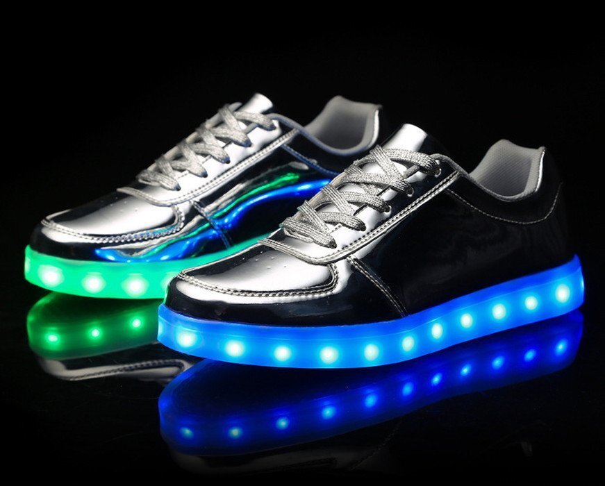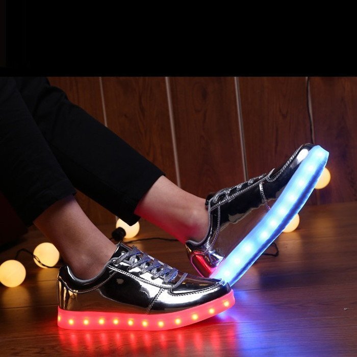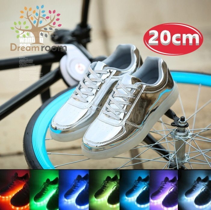 1スタ☆7色に光る☆LED ライトアップスニーカー メタリック ダンス 【シルバー 20cm】夜間 交通事故防止 反射材 ジョギング 自転車