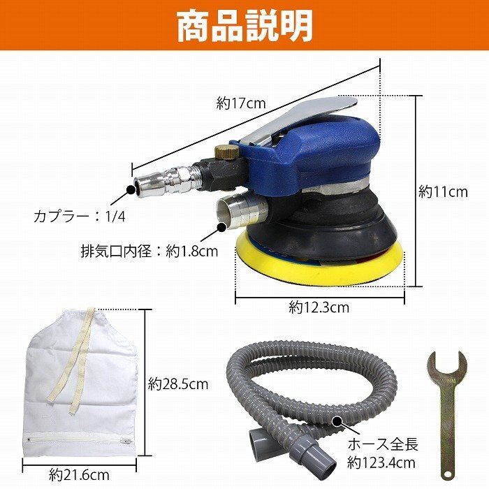 商 品 説 明力強いダブルアクションオービタルサンダー集塵式125mm(5゛インチ)です。