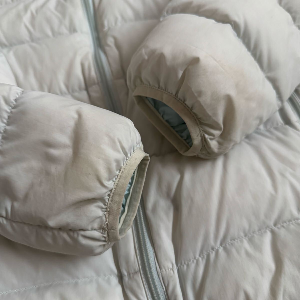 袖口が少し汚れていること、内側のタグに名前シールを貼っていた為、剥がした跡が少しあります。