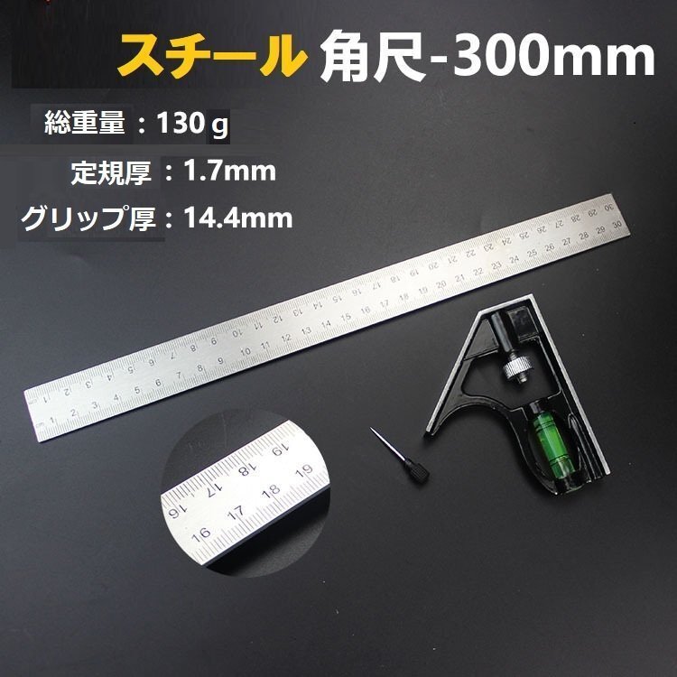 多用途 水平器付 スチールスケール 300mm 差し金 曲尺 バークランプ 定規 一体型