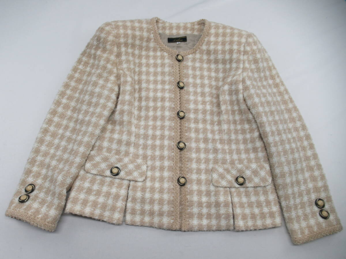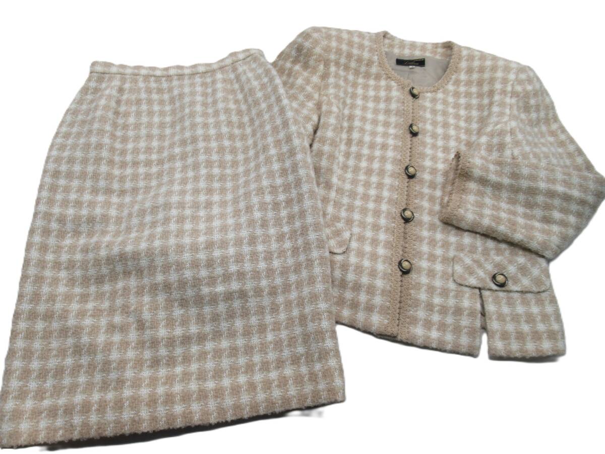【送900円】3384 Leilian レリアン セットアップ 2ピース スーツ ジャケット&スカート ツイード系 チェック 9 ウール混