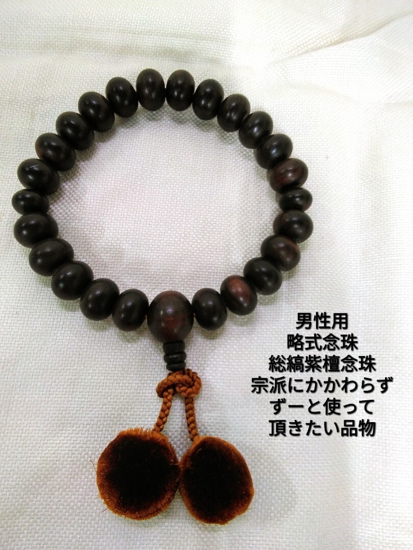 男性用略式念珠 、宗派を問わずどこでも使える良い念珠です。木製念珠でもパワーがあり、厄除けや守護/安心感のある念珠です。大切にずーと使って頂きたい品物です。【お値打ち品】