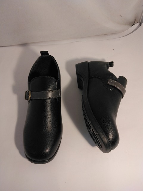 使用状況:ベルト付きの柔らかい合成皮革のカジュアル靴です。色は黒色です。カカトの高さは約3cmです。