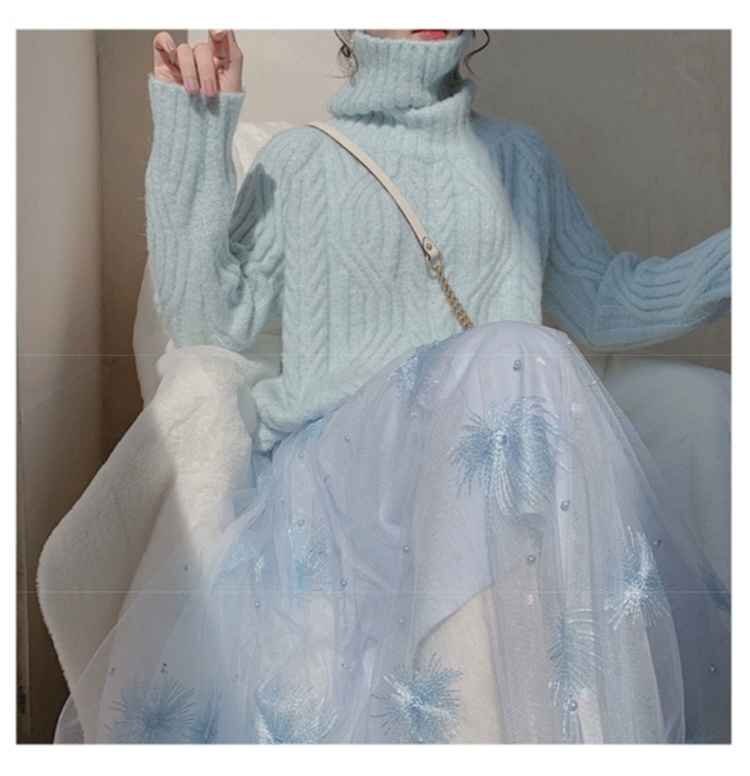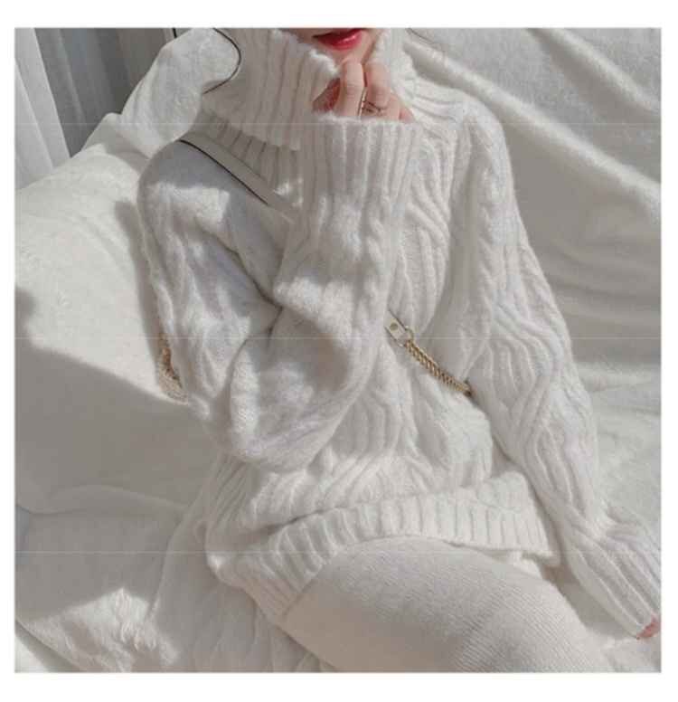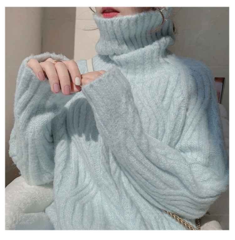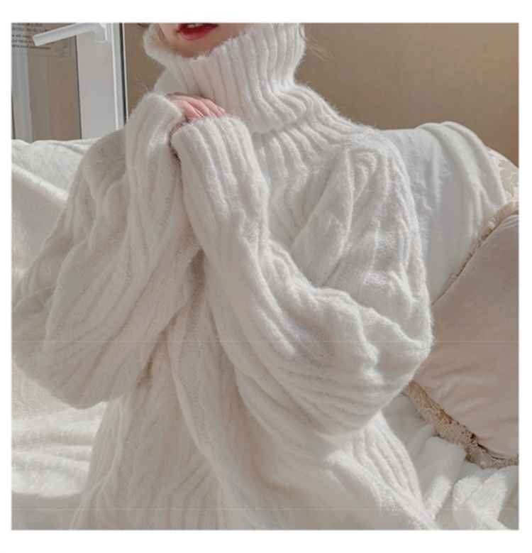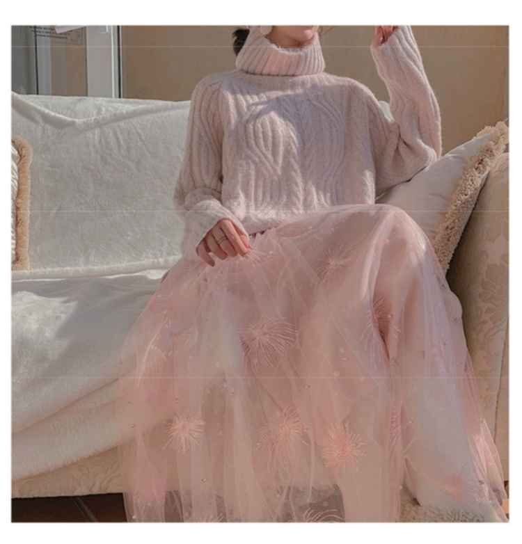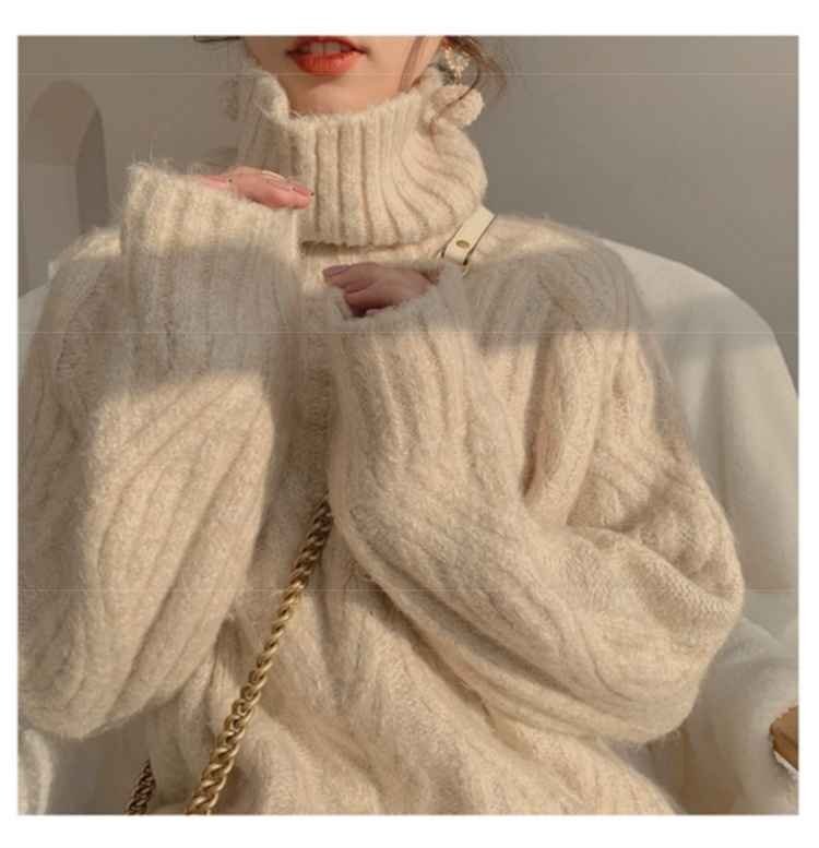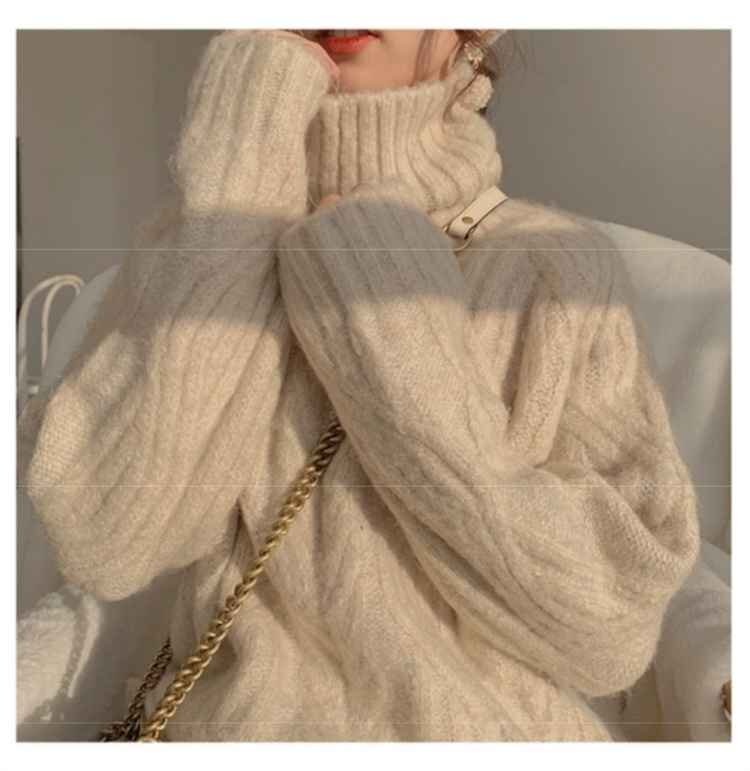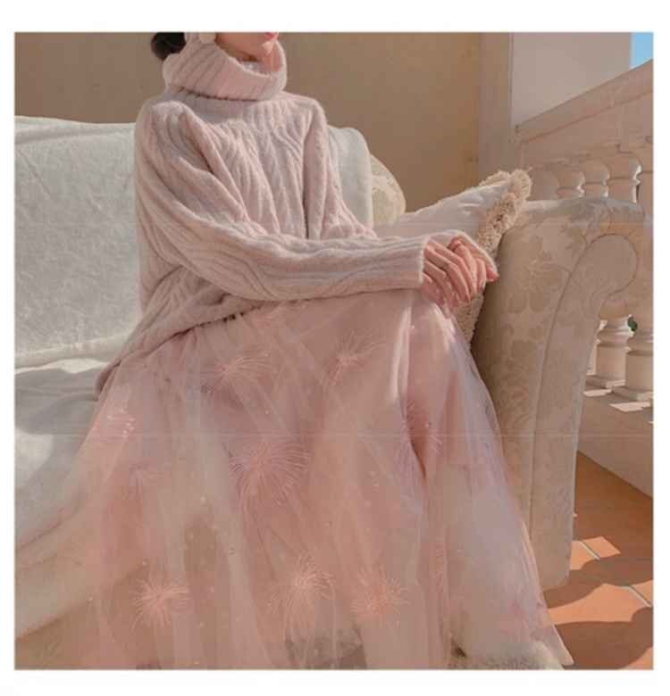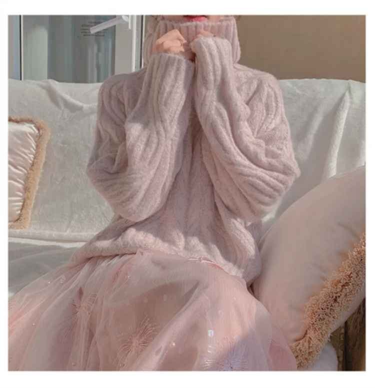 タートルネック ニットトップス ゆったり感 暖かい 厚手 セーター XL ピンク