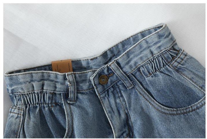 ・ウエストの位置を高く見せスタイルアップできるハイウエスト。可愛いロールアップデザインです。