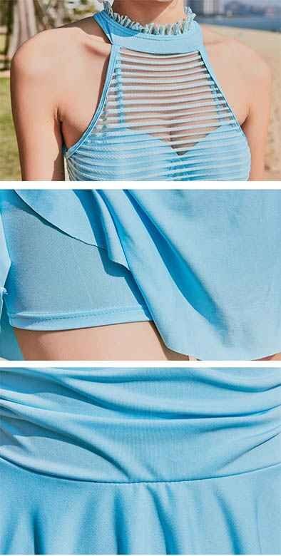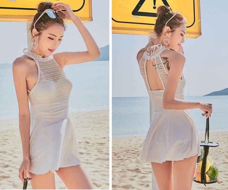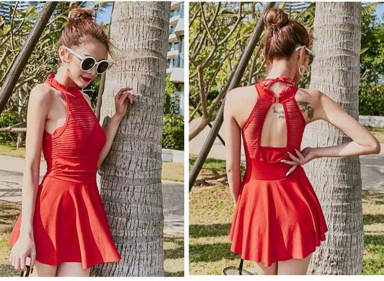 ワンピースタイプで気になるお腹まわりやヒップをしっかり隠せちゃう。細見え効果!