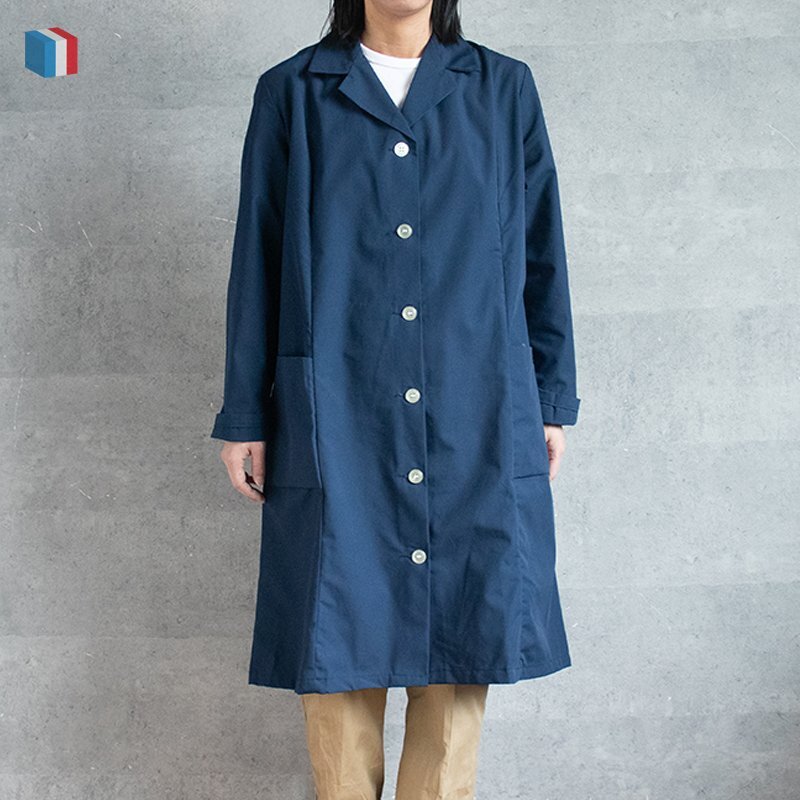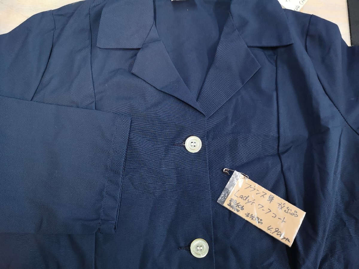 80年代フランス軍のレディースワークコートです。三枚目以降の写真は流用です。 薄手のポリコットン素材が使用されています。綺麗なAラインシルエットです。 ●サイズ:88/106( 肩幅約37cm、身幅約48-60cm、着丈約95-108cm、袖丈約56cm ) ●素材:ポリコットン ●状態:デッドストック 沖縄離島を除く全国500円でお送りいたします、落札価格にプラスでお願いいたします。