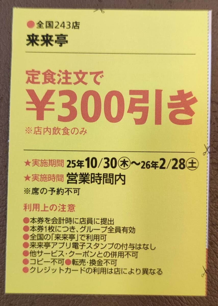 「来来亭」関西ウォーカー★雑誌切り抜きクーポン券・2枚