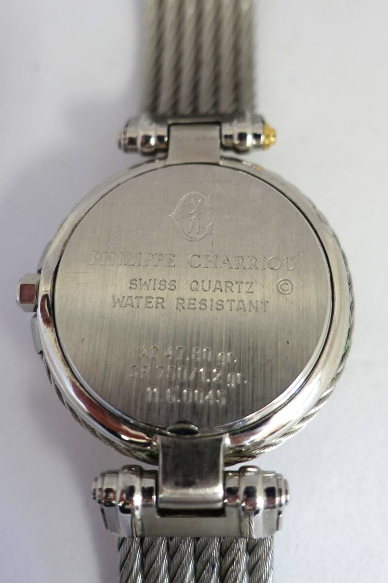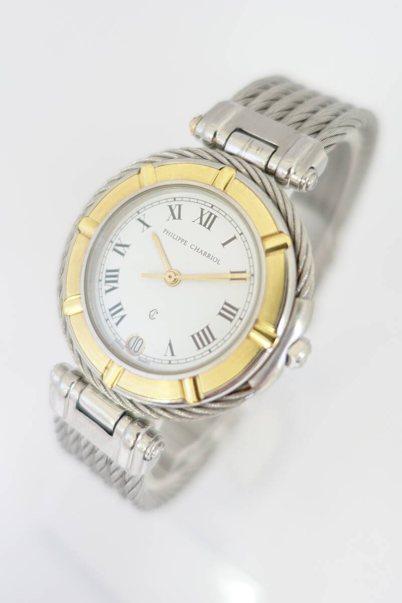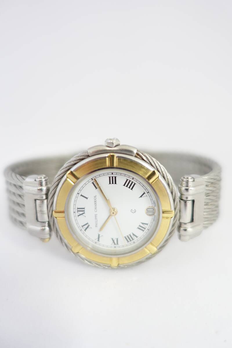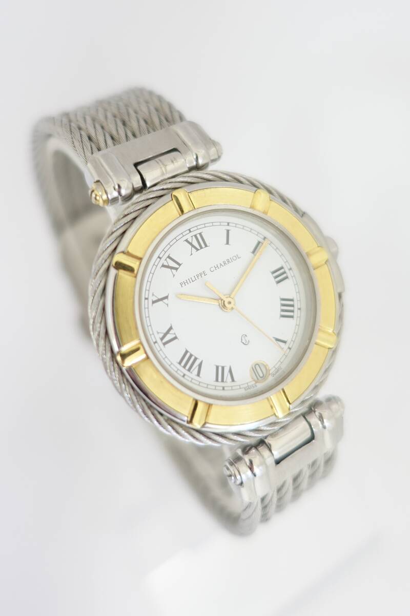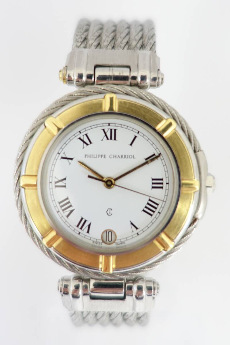 9-198 1円~ PHILIPPE CHARRIOL 11.6.0045 フィリップ シャリオール 腕時計 メンズ QZ デイト ホワイト文字盤 動作確認済み 稼働品