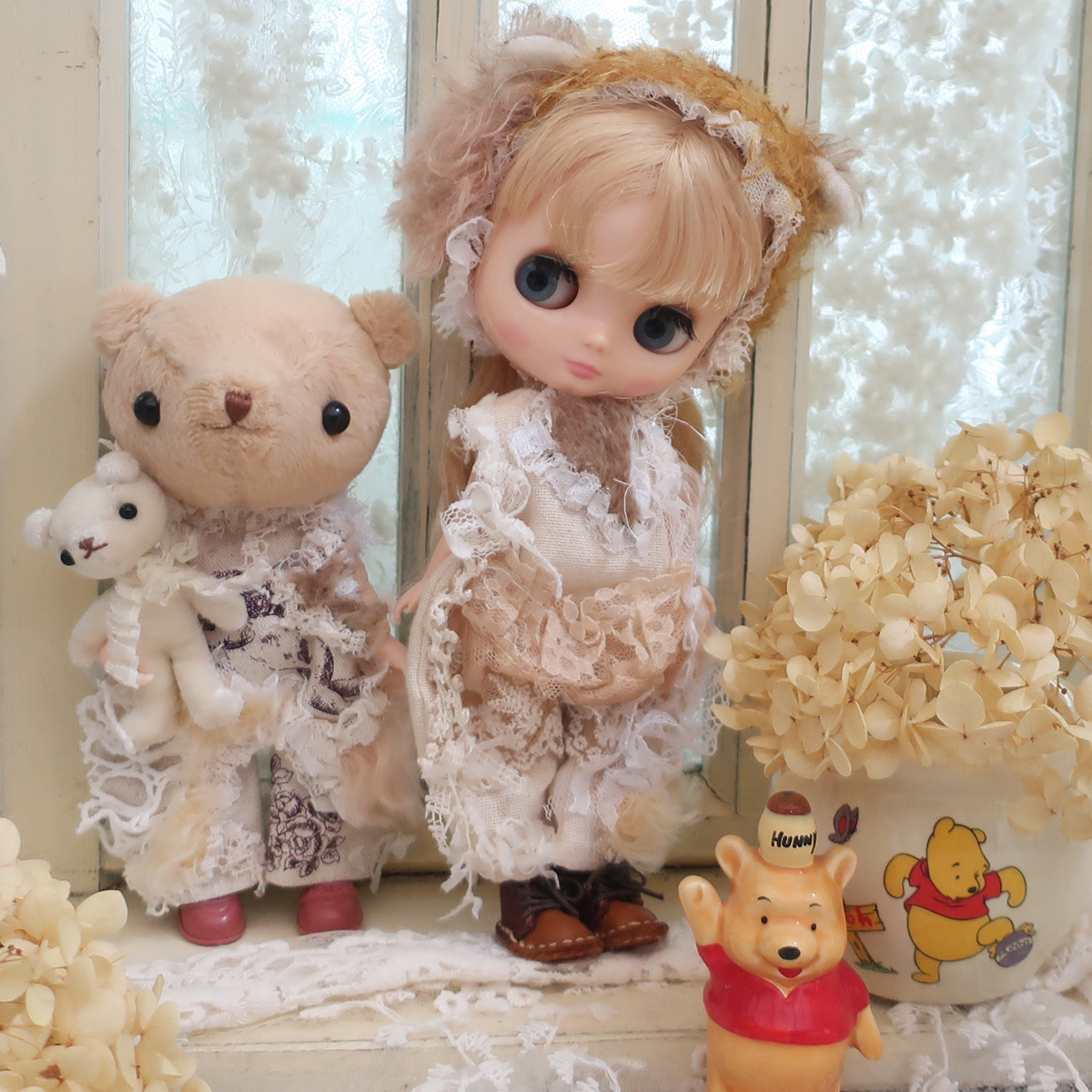 出品は、ワンピース3点、ヘッドドレス(くま、うさぎ、ねこ、ドイツ製モヘア使用)3点、帽子5点、リスの着ぐるみ、ドロワーズ2点、ブラウス2点、ロンパース4点、ミニベア、テディドール(seriaの可動式ドールボディにテディの顔を固定してあります。)、可動式ドールボディ用市販の靴の23点です。仔猫のしっぽは、取り外し可能です。大変申し訳ありませんが、24時間以内にお取引可能な方、受け取り後すぐに受取連絡が可能な方のみ、ご入札をお願い致します。ドール本体、靴、背景の小物は含みません。配送方法の変更は出来ませんのでご了承ください。