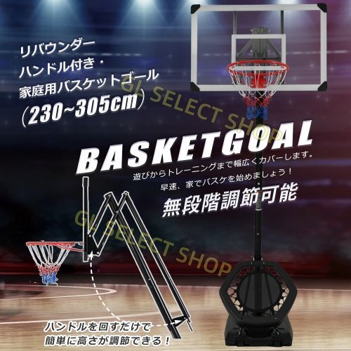 バスケットゴール ハンドルを回すだけの簡単 高さ無段階調節 フロートボード付き 公式&ミニバス対応 230-305cm 移動可 工具付き