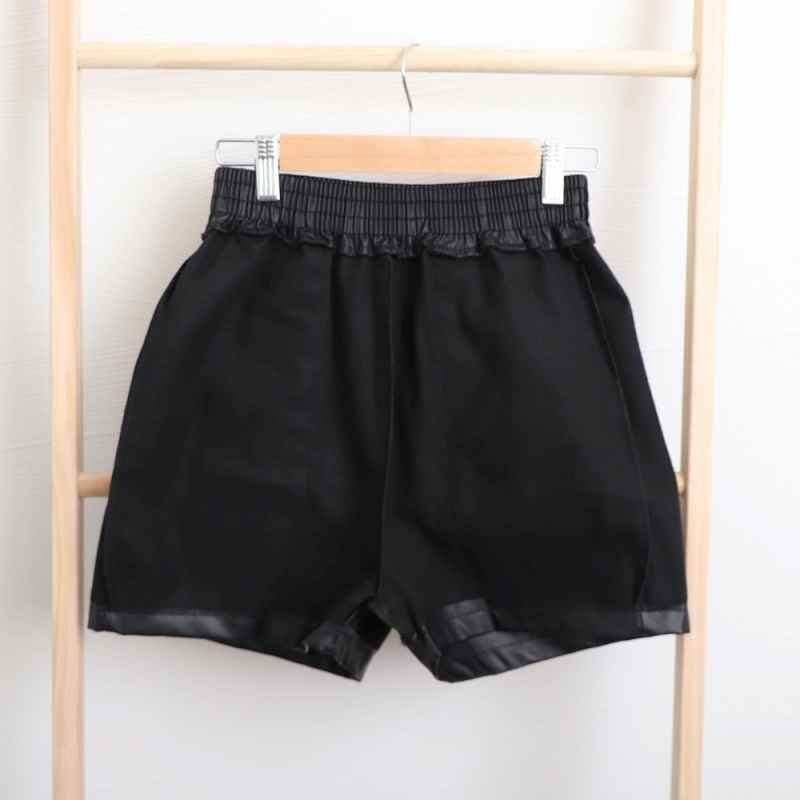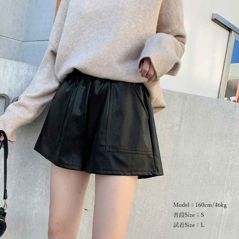 艶のある上質な柔らかい生地感、COOLな印象を放つエコPUショートパンツ