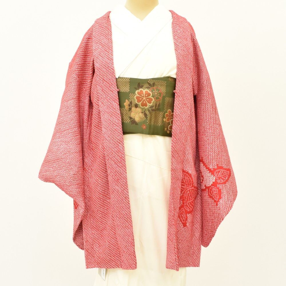 【商品説明】赤色に絞り文様が施されたお洒落な長羽織です。 【シミ汚れ等の状態】 シミ汚れなくきれいです。 ★サイズについて サイズに関しましては一品ずつ手で測っており、お着物や帯の性質上生地の伸縮性もございますので、 若干の誤差がある場合が多々ございます。 2cm未満の場合は、誤差となりますので大変申し訳ございませんが返品は承っておりません。予め御了承下さい。 |