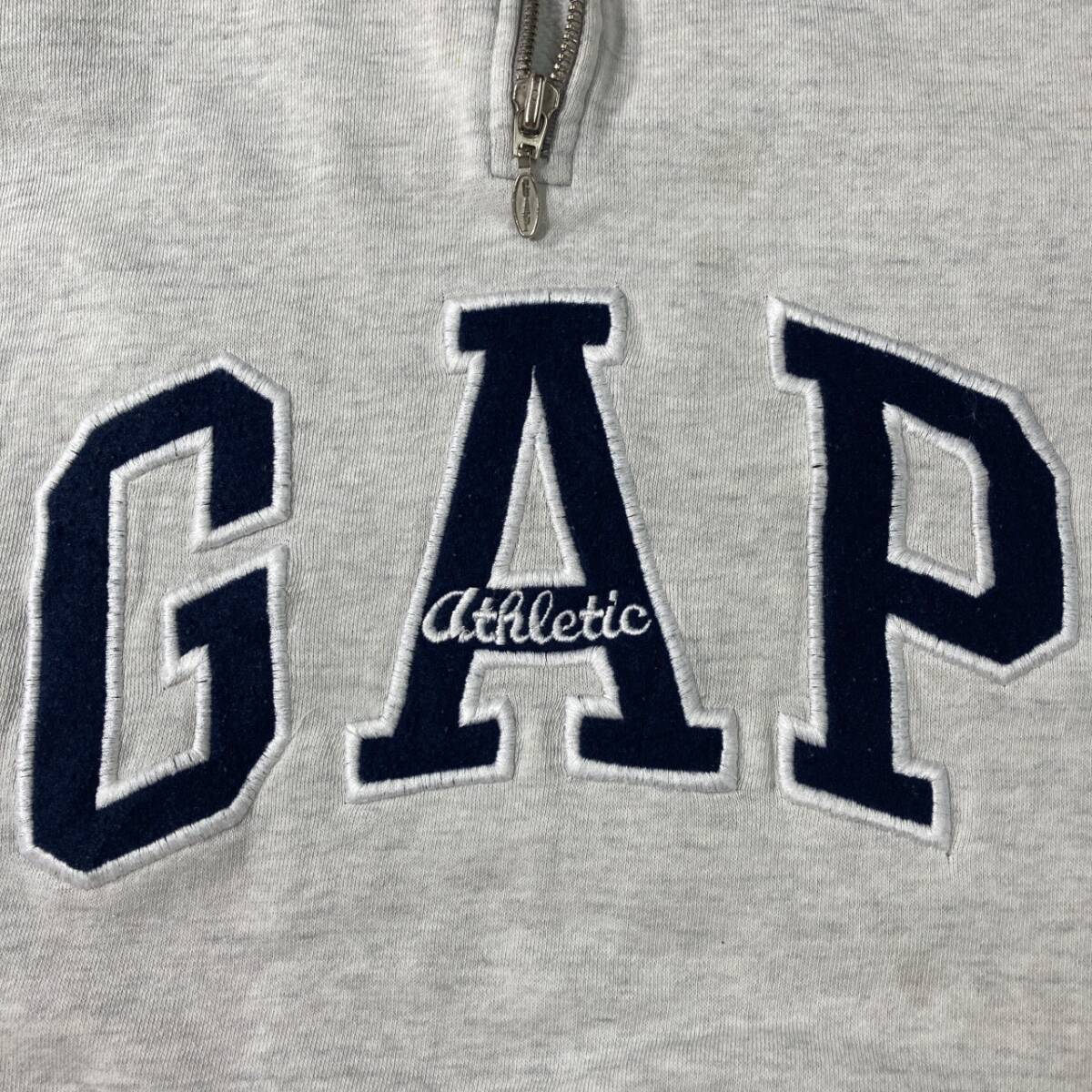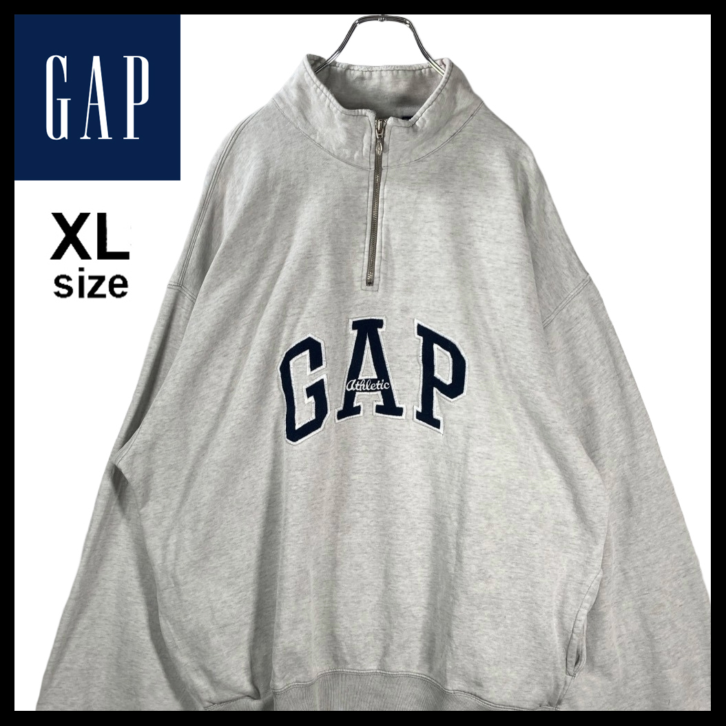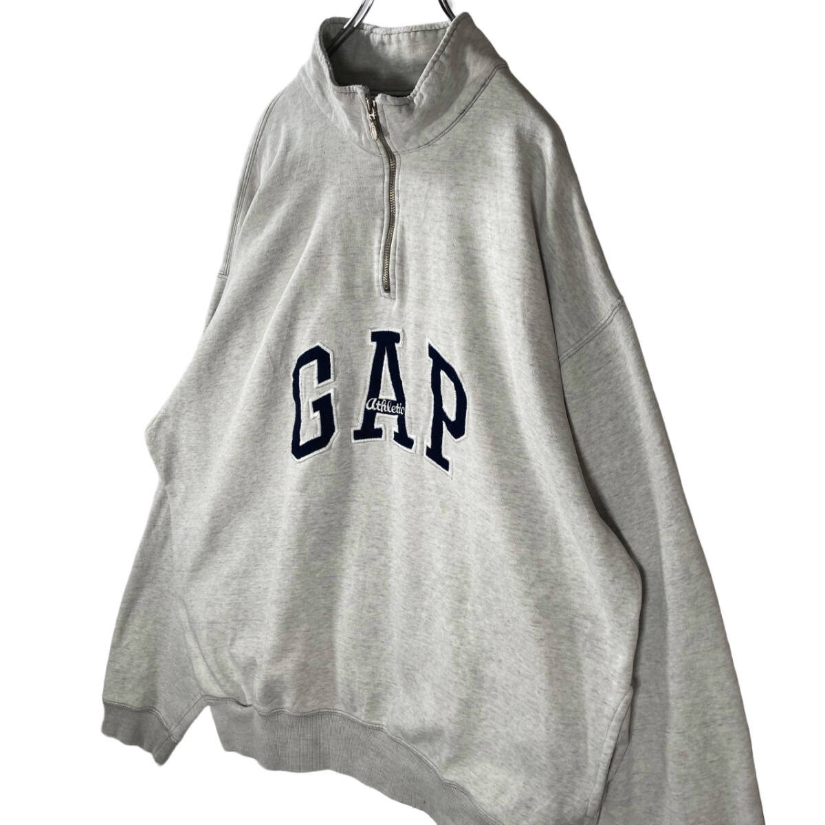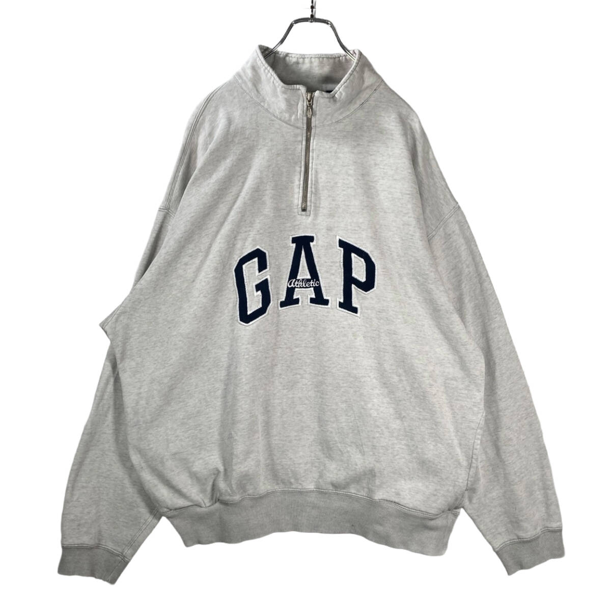 【USED】 ギャップ OLD GAP ハーフジップ スウェット トレーナー 刺繍ロゴ 90s 古着 グレー( XL サイズ ) ☆送料無料☆