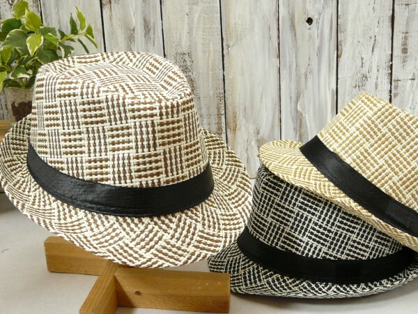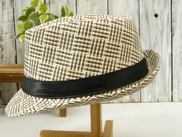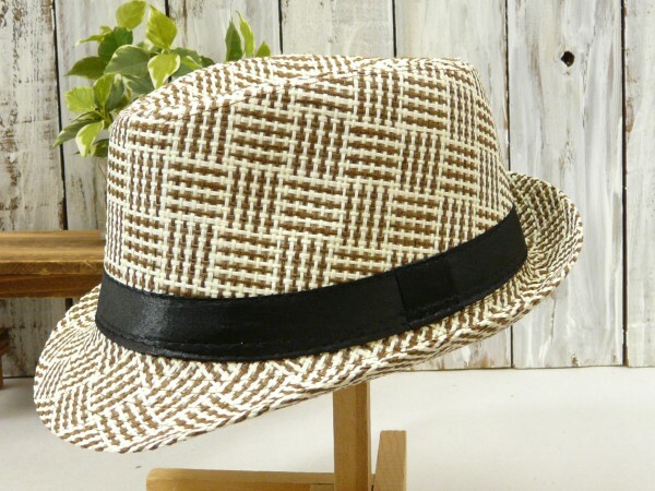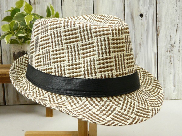 STRAW HAT 編み込み スクエアーチェック ブラウン 男女OK 送料\450 ストロー メンズ レディース