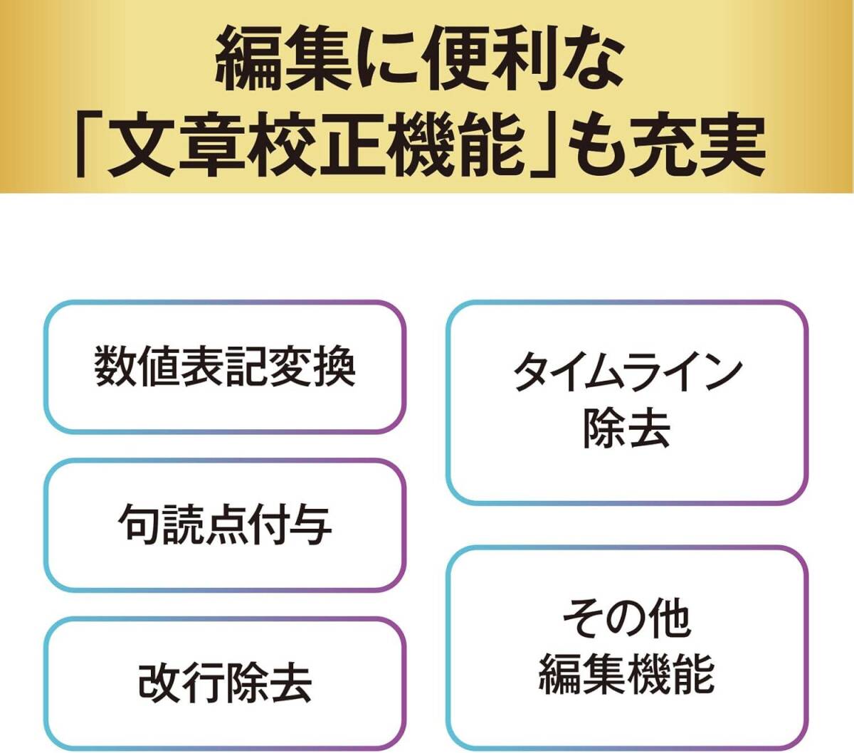 • 【動画対応】動画ファイルの音声部分を文字化する機能を搭載し、多彩な用途に対応。