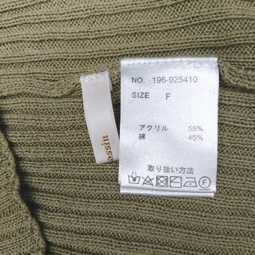 ◇ Ray Cassin レイカズン メッシュ 透け感 ウエストリボン 無地 ノースリーブ ニット サイズF カーキ レディース E 1