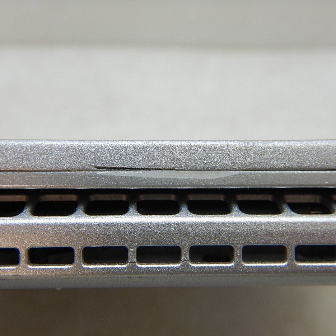 | 外装状態 | 本体天面に凹みが複数、割れている部分あります。 本体側面に小さな欠けがあります。 本体全体に削れ、大きな傷、大きな擦れ痕、シール痕、塗装ハゲがあります。 液晶にシミがあります。 キーボード文字にカスレ消えはありませんが、少し黄ばみやテカリなどの使用感があります。 |