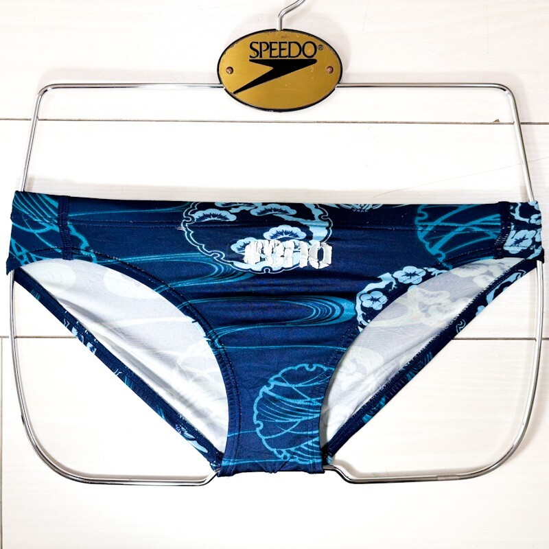 2アリーナ男子競泳水着SS★NUX/ARN-4013★薄地★超光沢ネイビー水色グラフィック柄★競パンVパンブーメラン