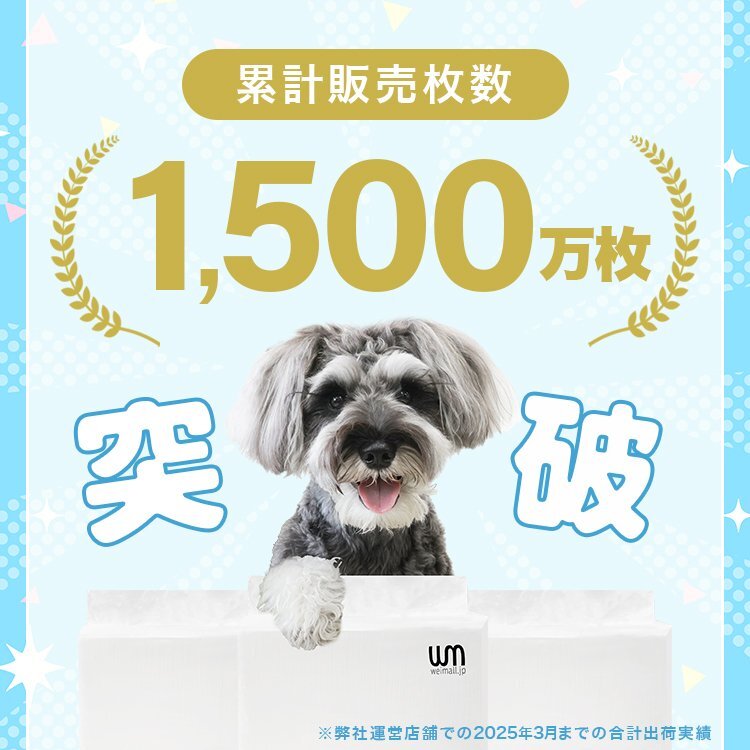 薄いのに吸水力抜群! 6層構造&ポリマーがしっかり吸水し、おしっこの逆戻りも少なく、裏漏れを防ぎます。 さらにシーツの四隅に圧着加工を施し、サイド漏れを防止します! 薄型でコンパクトなので、収納時やゴミ捨ての際にかさばりません。 製造後にUV除菌を行っているので、安心してご使用いただけます。 シートの色はホワイトなので、健康状態の目安になるおしっこの色もチェックしやすい! ケージの中に敷いたり、ネコ用トイレとしても最適です♪ 【商品仕様】 サイズ:(約)90cm×60cm スーパーワイド 吸水目安:(約)300cc 枚数:300枚 (犬用トイレ 犬トイレ イヌ いぬ ワンちゃん 猫用トイレ 猫トイレ ネコ ねこ ねこちゃん 多頭飼い 無香料 抗菌 使い捨て まとめ買い 人気 おすすめ 安い WEIMALL) |