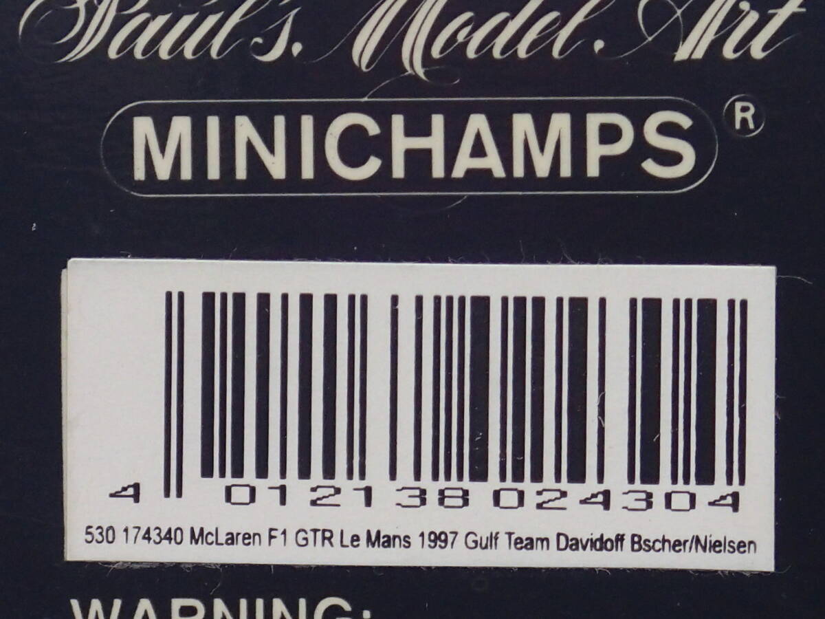 | 品番:530 174340 MINICHAMPS 1/43 530 174340 McLaren F1 GTR Le Mans 1997 Gulf Team Davidoff Bscher/Nielsen |