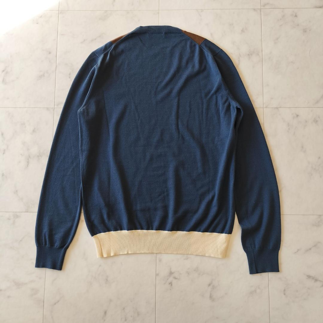 クラシカルなクルーネックデザインながらも、計算されたカラーリングにより現代的でモダンな印象を与えます。シンプルなパンツと合わせるだけで、洗練されたスタイリングが完成する優秀なアイテムです。