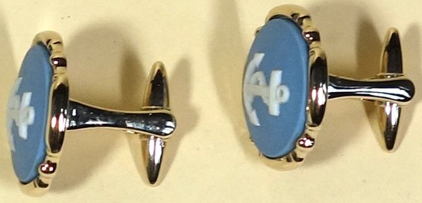 未使用ですが古い物ですので多少の汚れや擦れは有ります。ケースも汚れや擦れが有ります。ケースの内側のヒンジのカバーが剥がれています。カフスボタンは問題なく使用出来ます。モチーフ部分の直径は2.2cmくらいです。
