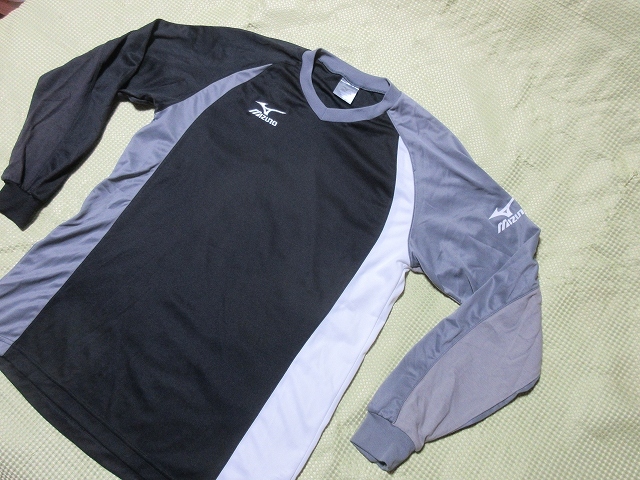 A-783★MIZUNO(ミズノ)♪黒xグレーx白/バレーボール/長袖プラクティスシャツ(O)★