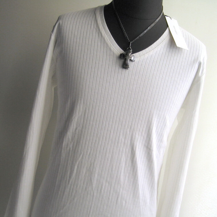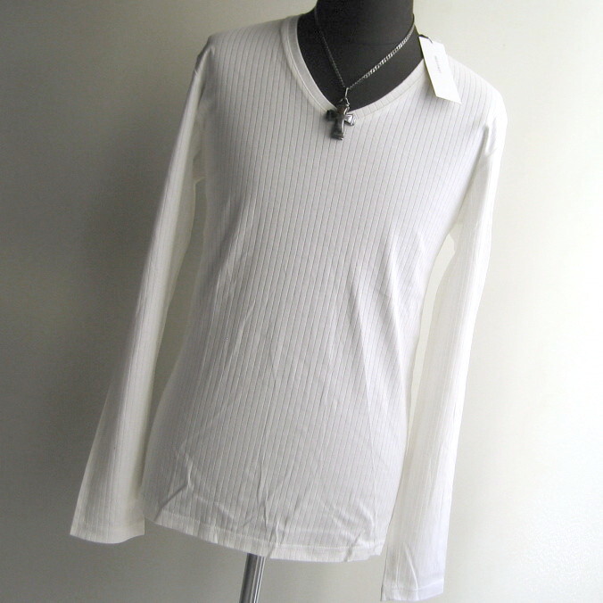 1.1万 新品 L ハイストリート ブライト針抜きテレコVネック長袖Tシャツ ホワイト サンプル 送料無料 508