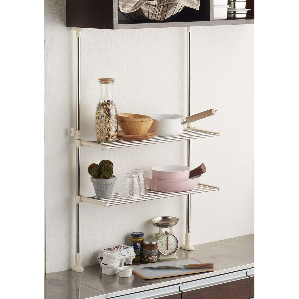 ベストコ ステンレス つっぱりキッチンラック 2段 レギュラー棚 ワームグレー NY-1000