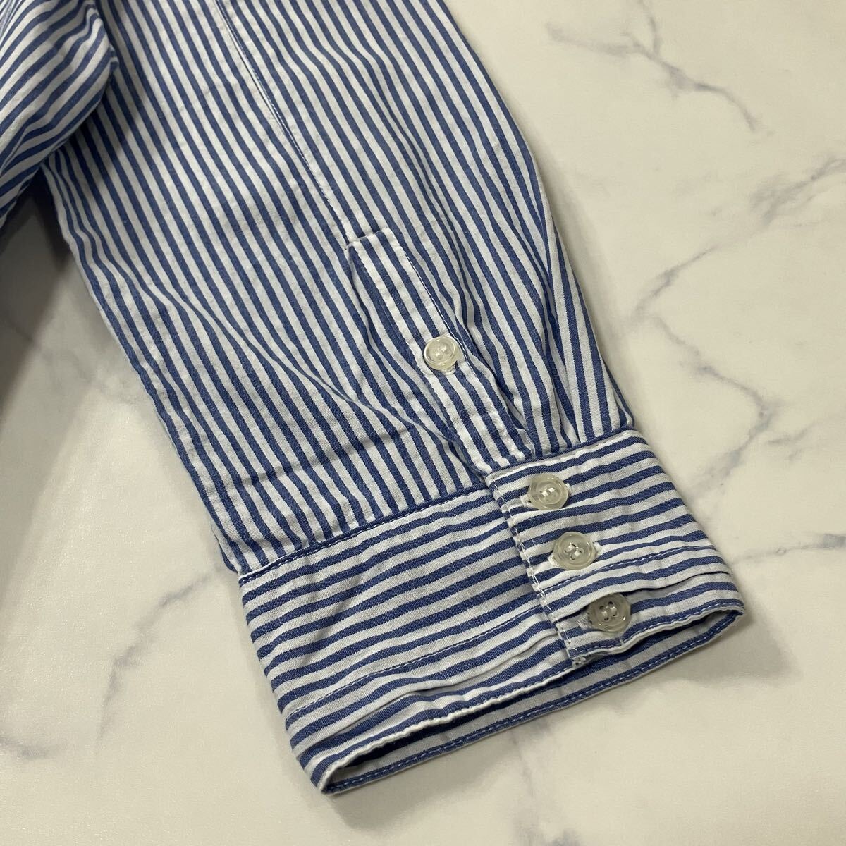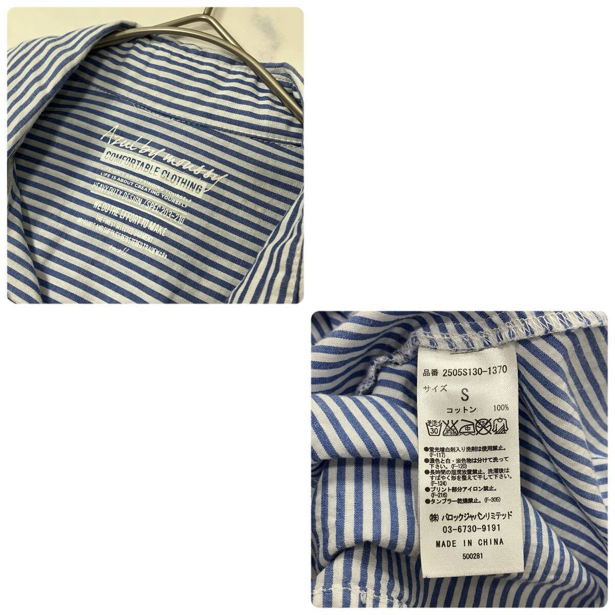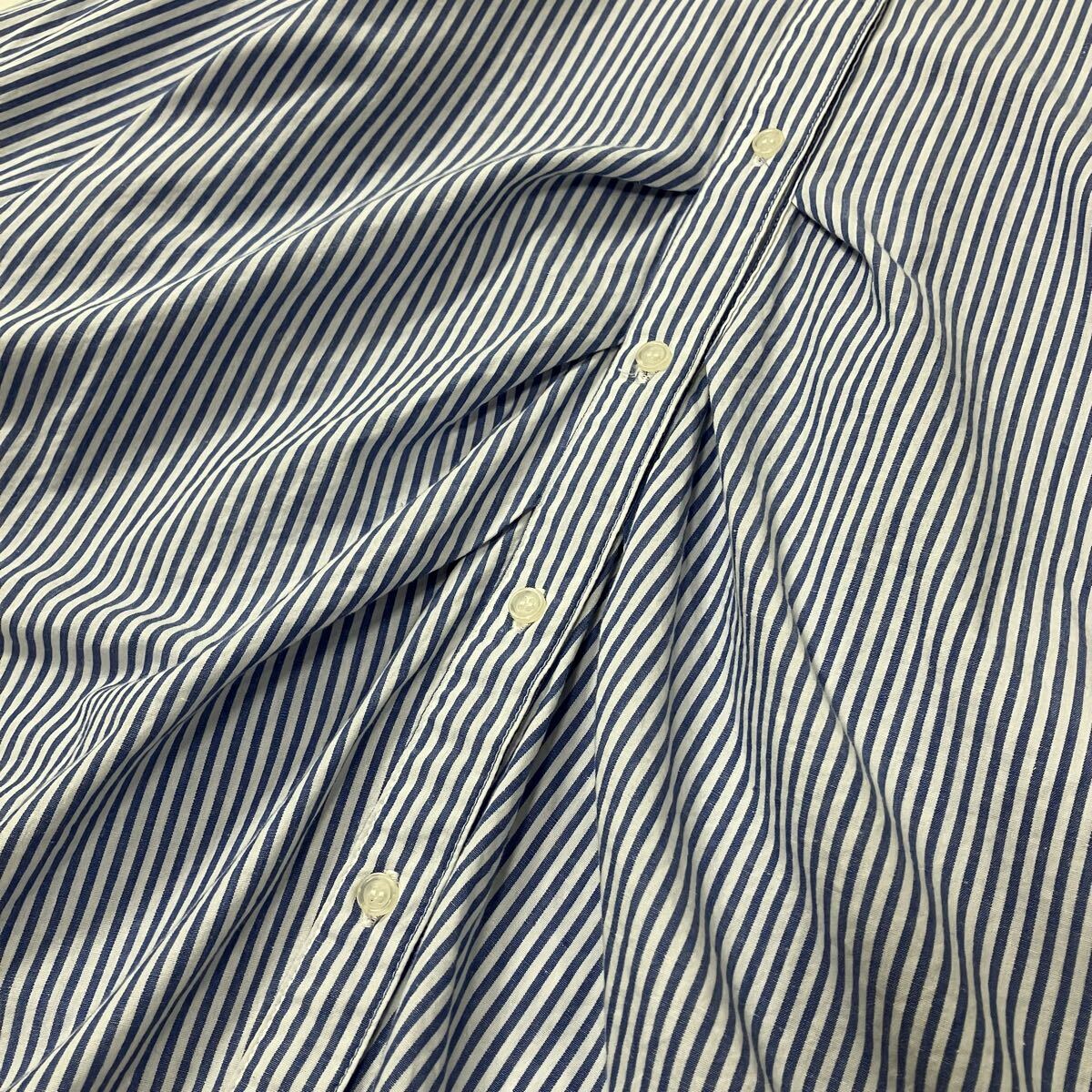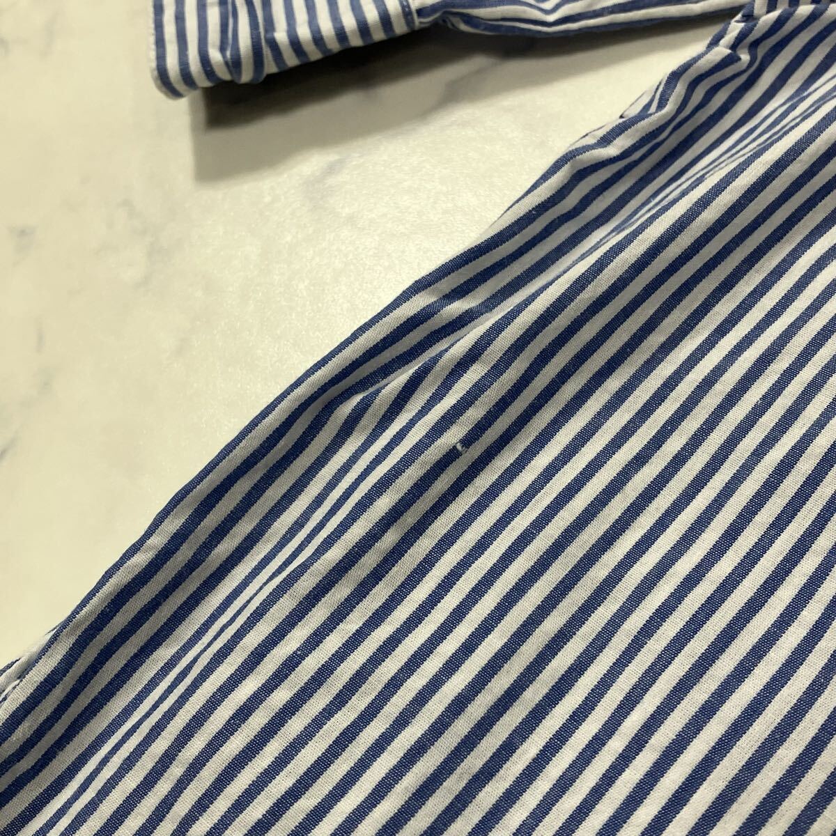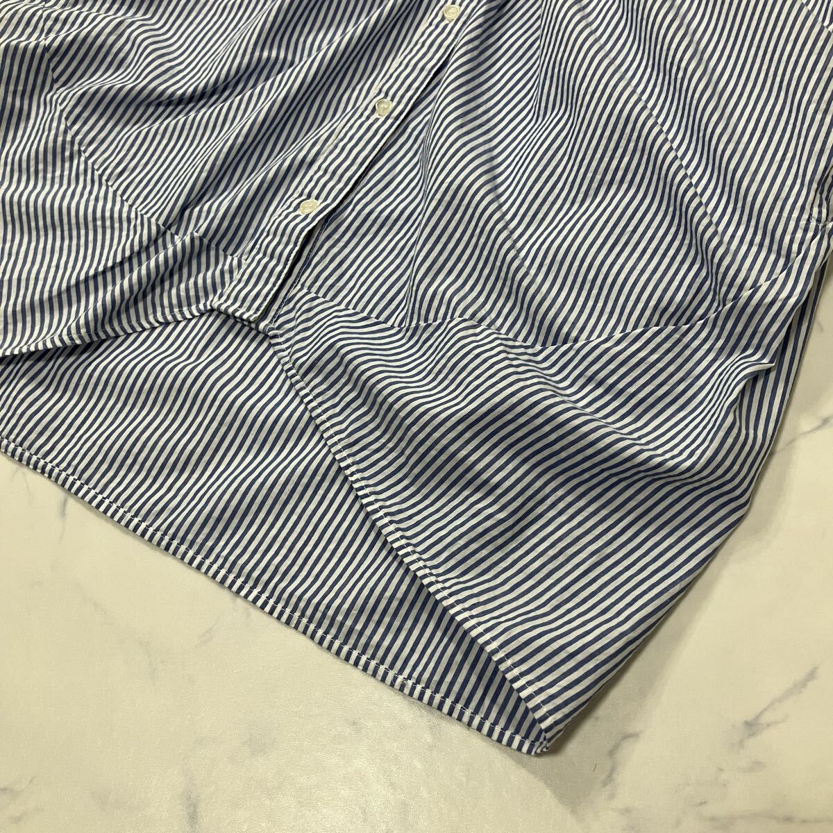 ストライプ 切替 ポケット タック ボタン デザイン性 フィッシュテール ロールアップ シャツカラー 七分袖 ロング シャツ ブラウス