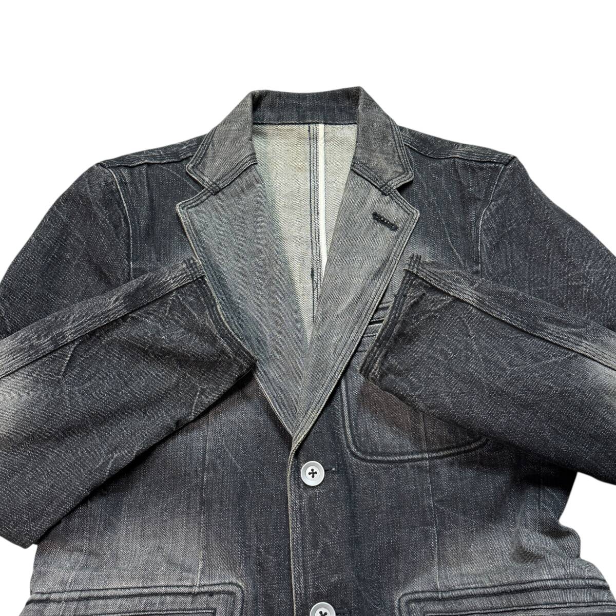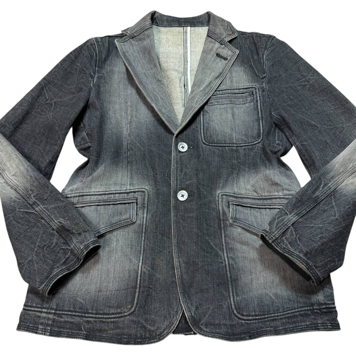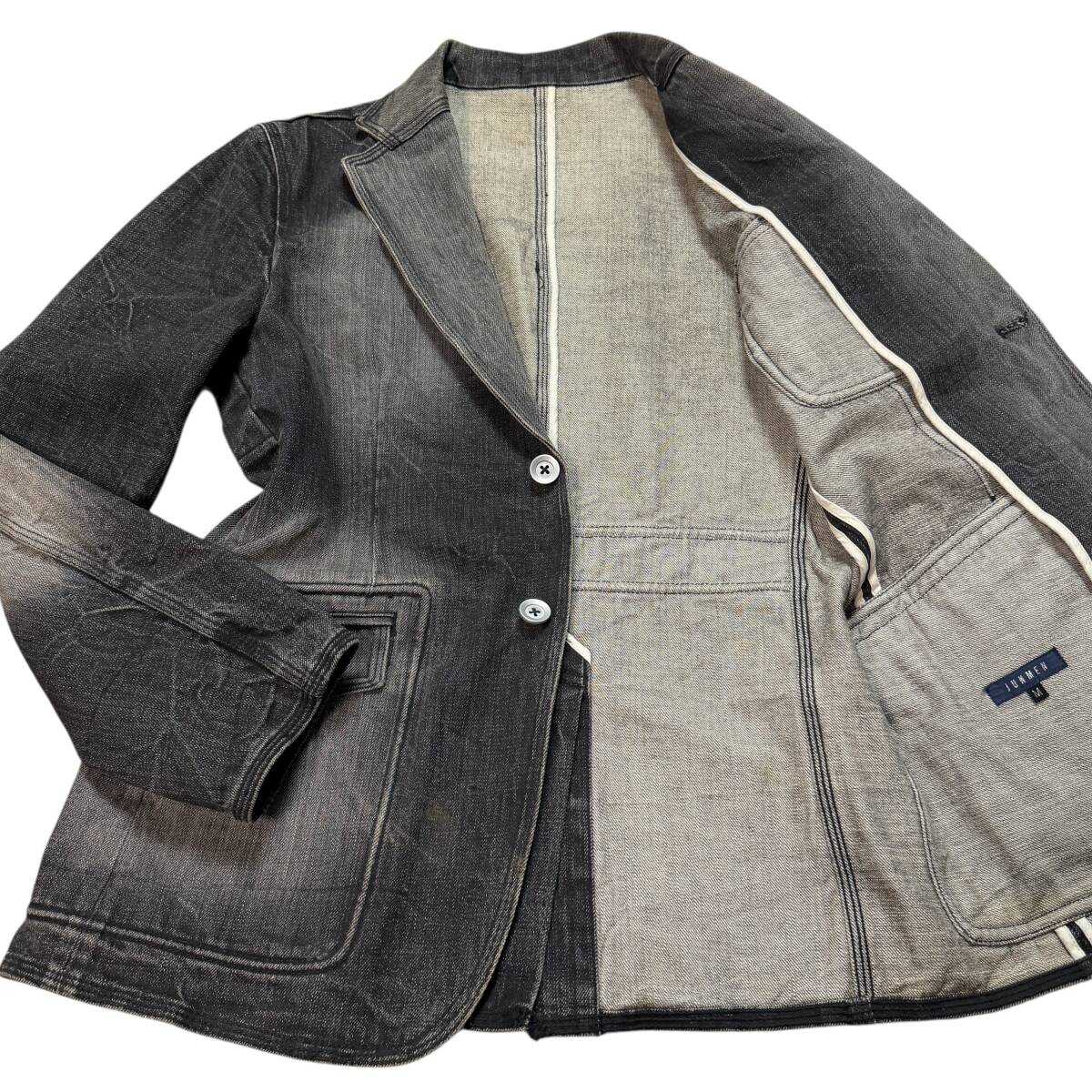 3776 美品 junmen ジュンメン テーラードジャケット デニム ブラック ダメージ加工 ブレザー 2B メンズ デニムジャケット Gジャン