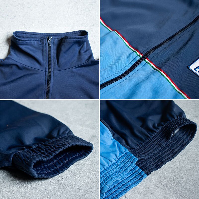 イタリア陸軍【Esercito】のトレーニングジムスーツのジャケットのみです。写真の7枚目までは流用です。またワッペンも違うデザインだったりなかったりもするので出品実物の写真でご確認ください。 ネイビーとブルーのバイカラーにイタリア国旗の赤、白、緑でパイピングされてた手の込んだ デザインがお洒落なアイテムです。 ジャケットとパンツ共に単体でも着用頂けるのも魅力の1つです。 素材:ポリアラミド 57% アセテート 43% サイズ XS( TOPS: 身幅51cm/肩幅46cm/着丈60cm/裄丈56cm PANTS: ウエスト60-75cm/総丈100cm/股下73cm ) M( TOPS: 身幅53cm/肩幅48cm/着丈65cm/裄丈63cm PANTS: ウエスト65-80cm/総丈107cm/股下77cm ) L( TOPS: 身幅56cm/肩幅54cm/着丈67cm/裄丈63cm PANTS: ウエスト70-85cm/総丈109cm/股下77cm ) XL( TOPS: 身幅61cm/肩幅57cm/着丈76cm/裄丈70cm PANTS: ウエスト75-90cm/総丈110cm/股下80cm ) ウエストは、ゴムが入っておりドローコードで絞ることが可能です。 沖縄離島を除く全国500円でお送りいたします。落札価格にプラスでお願いします。