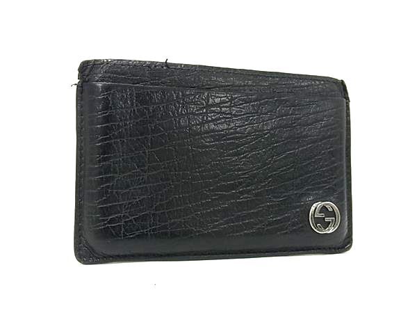 GUCCI グッチ インターロッキングG レザー カードケース カード入れ パスケース 定期入れ メンズ ブラック系 DK4155