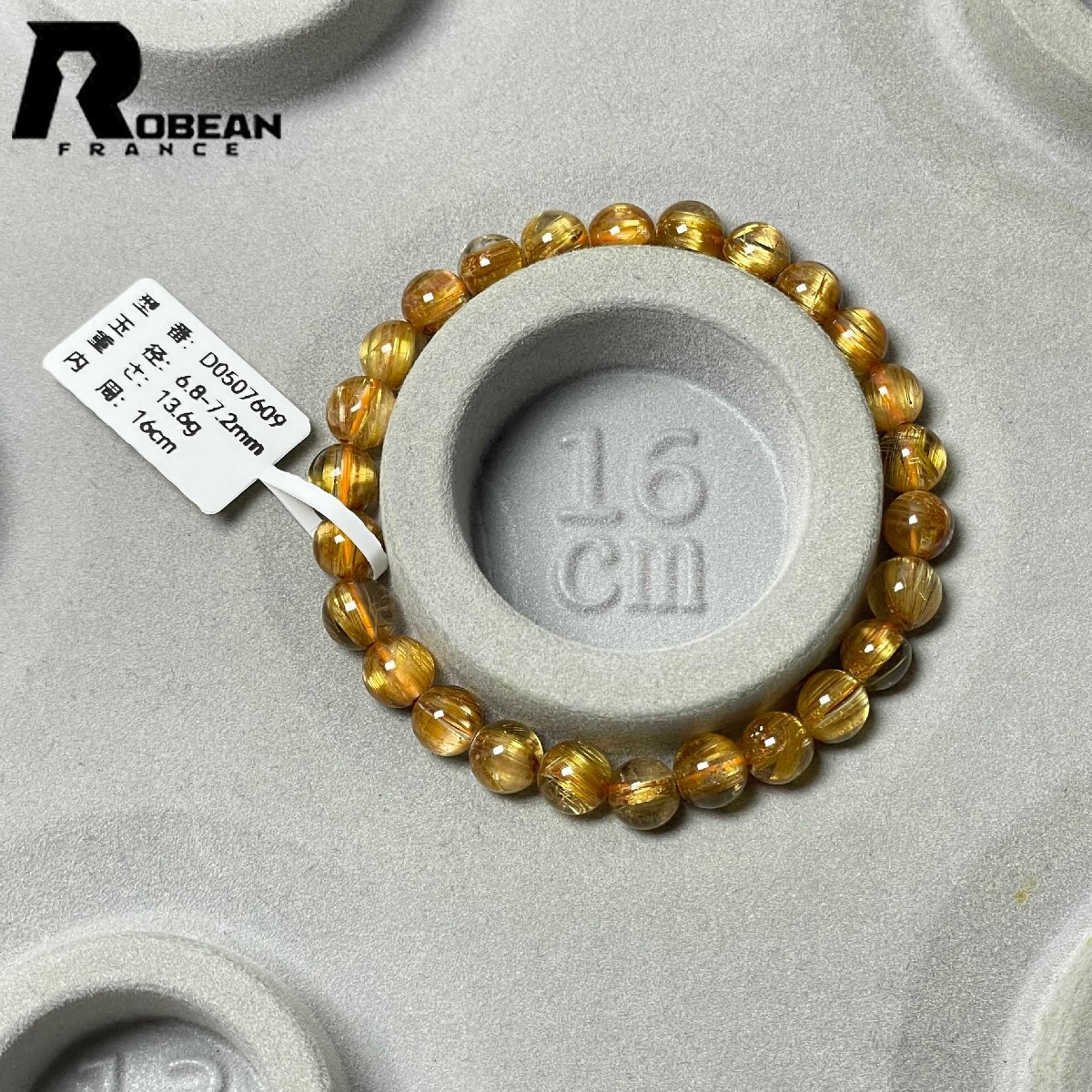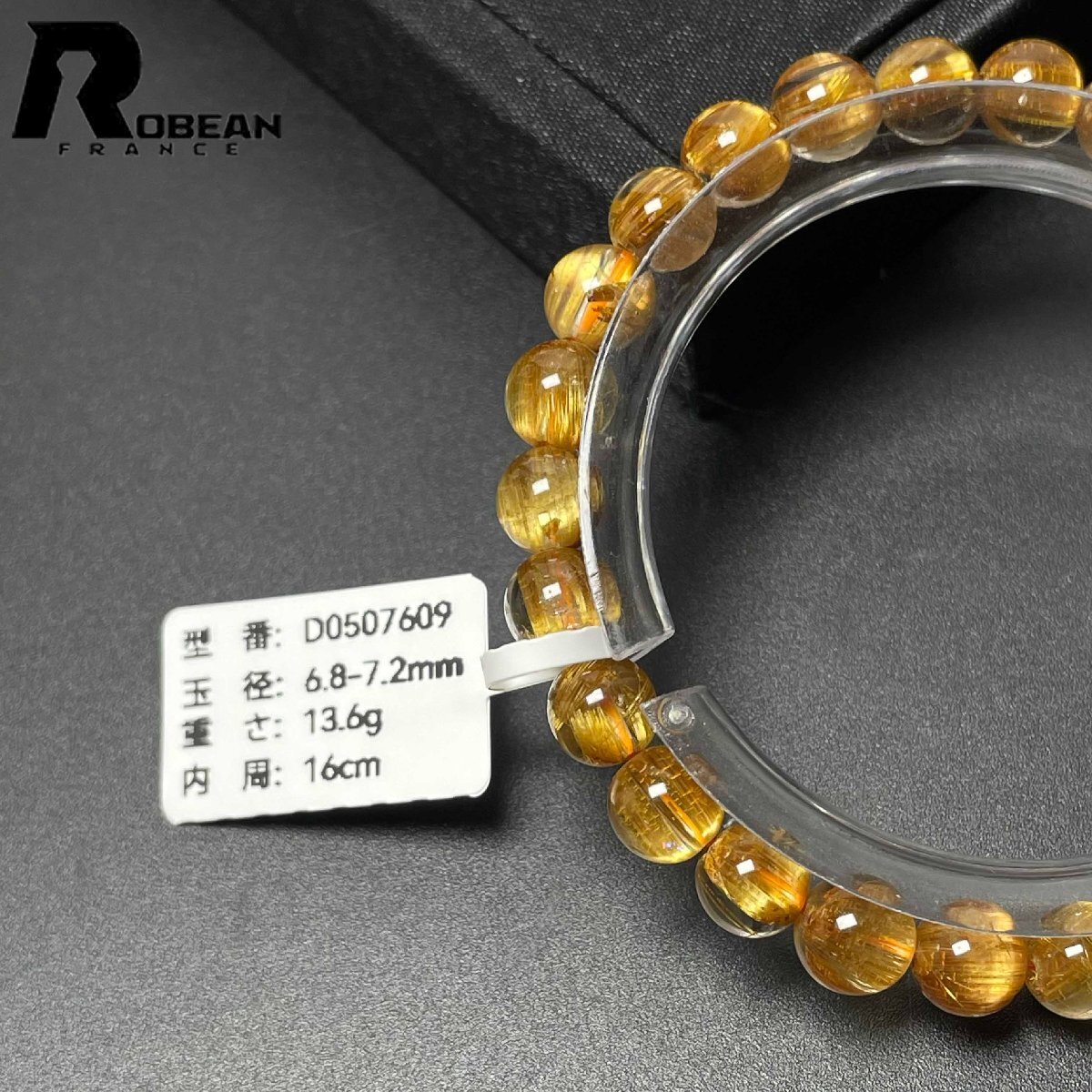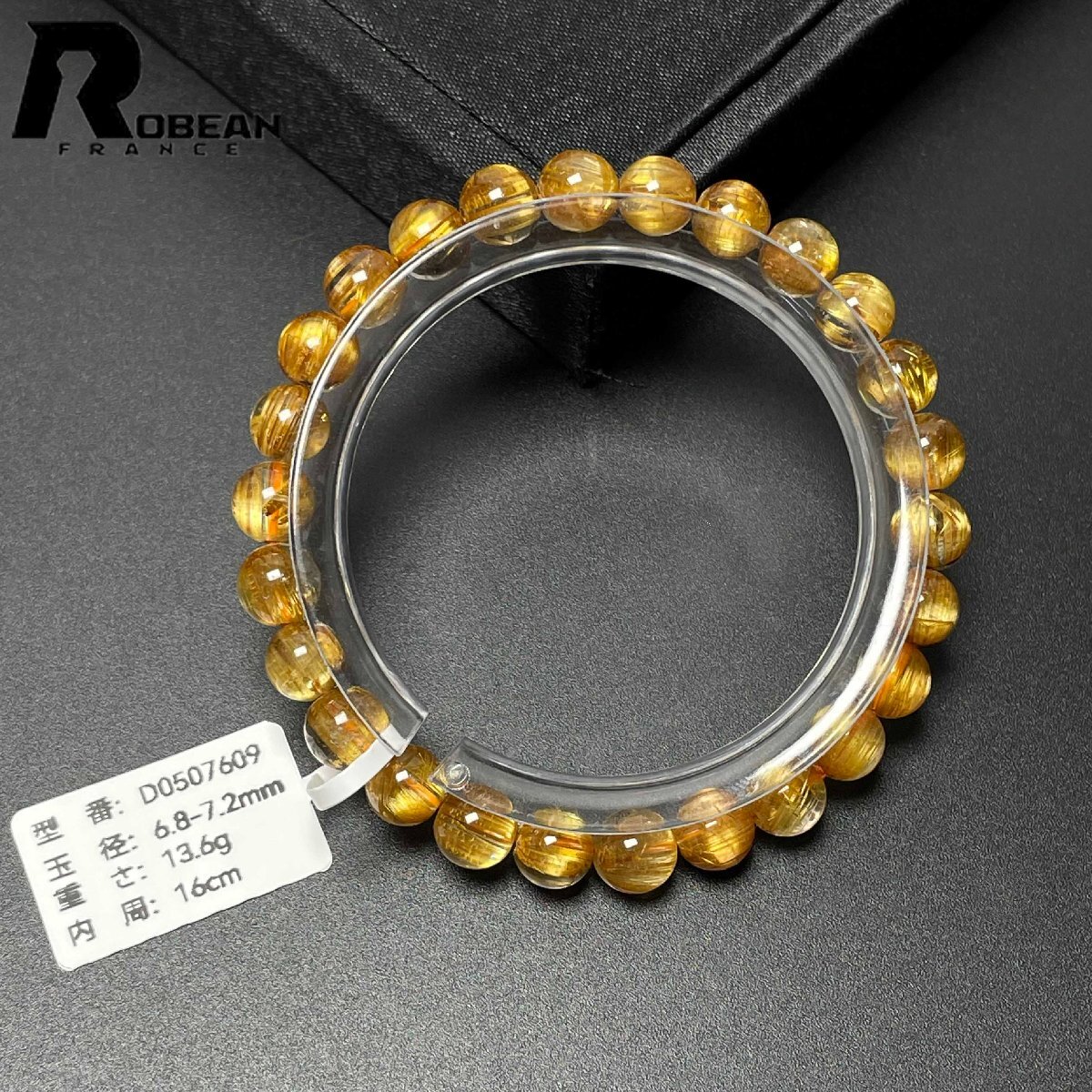【限定一点】貴重 EU製 定価98万円★ROBEAN・極!極満針ルチルクォーツ★猫目ブレス パワーストーン 天然石 金運 お守り 6.8-7.2mm D0507609