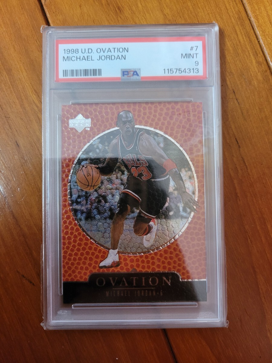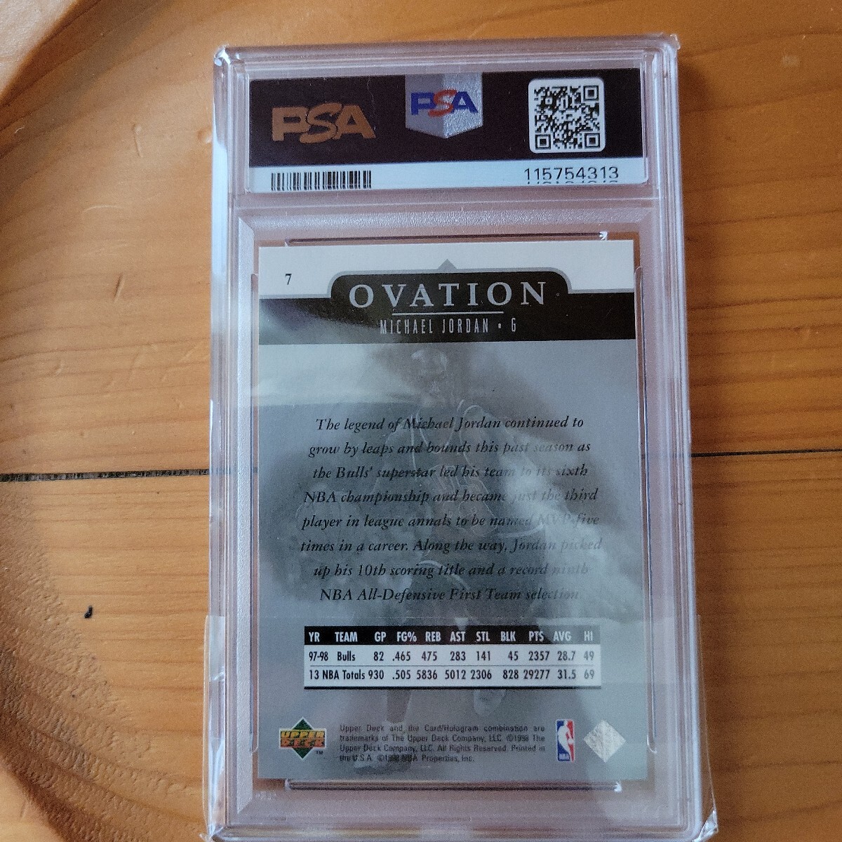 1998 Upper Deck Ovation の Michael Jordan(マイケル・ジョーダン)#7、PSA9(Mint) での出品です。