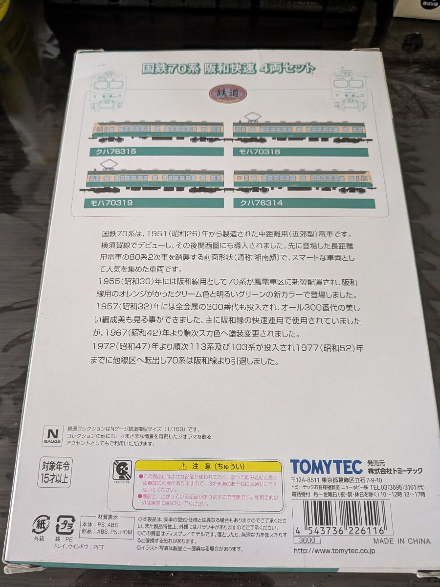 鉄道コレクション 国鉄70系 阪和快速 4両セットになります。