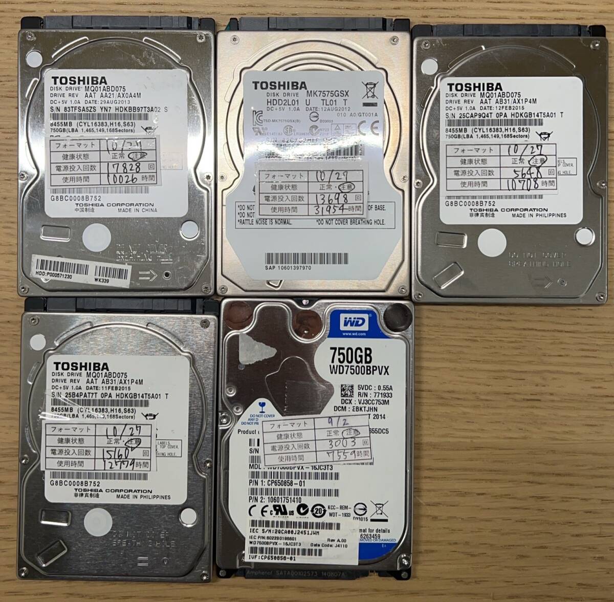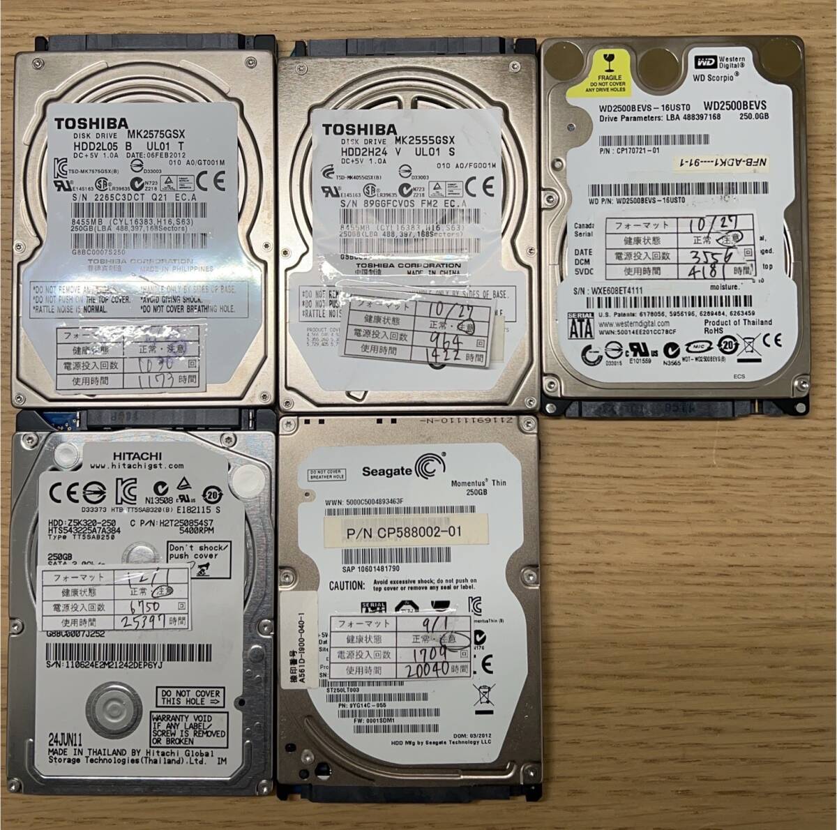 各HDDに使用回数、使用時間を記載しております。画像でご確認ください。