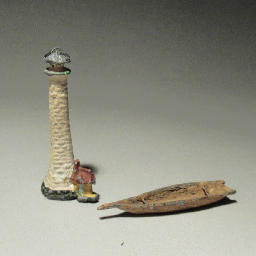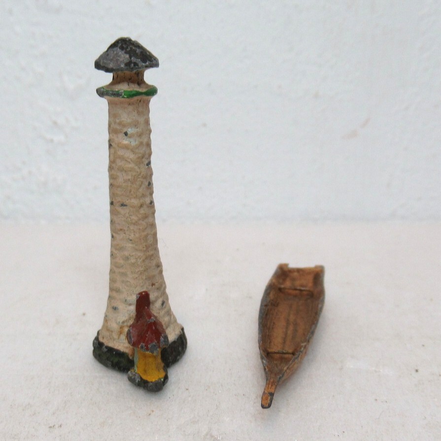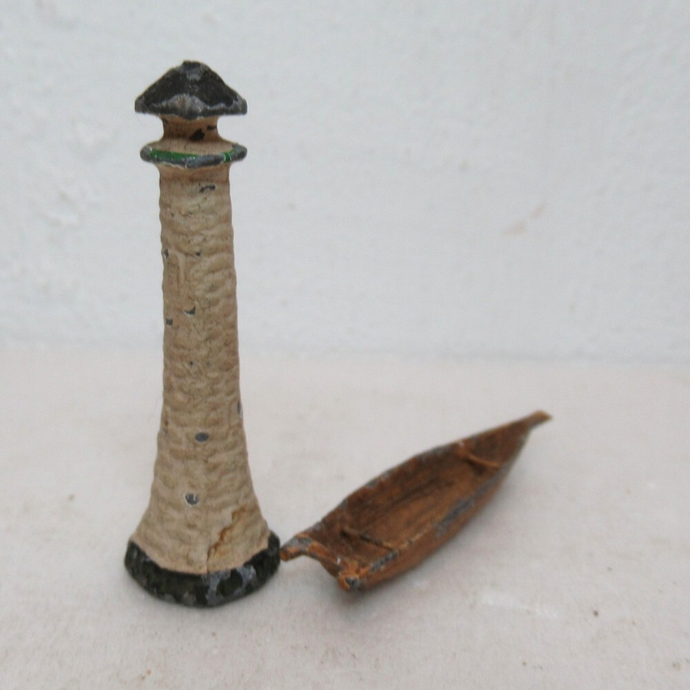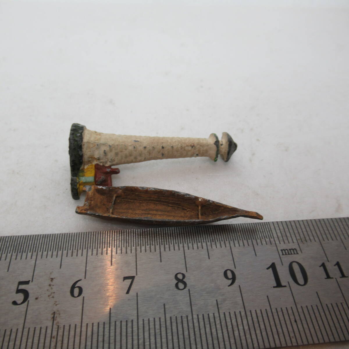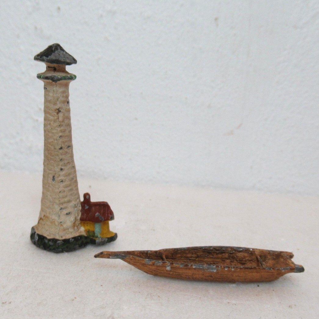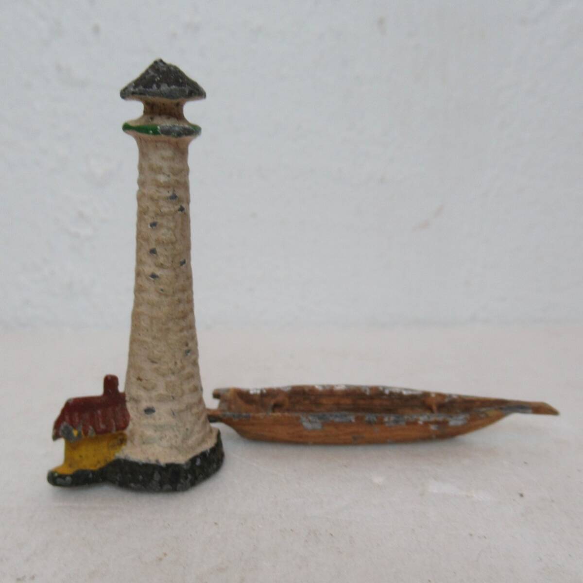 金属製 古い添配 2点 灯台 舟 / 添景 / 盆栽飾 ★bonbonsai-am27
