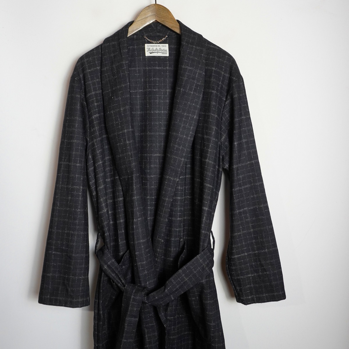 WACKO MARIA ワコマリア BLURRED CHECK GOWN COAT ショールカラー ガウン コート チェック柄 サイズM ブラック黒です。