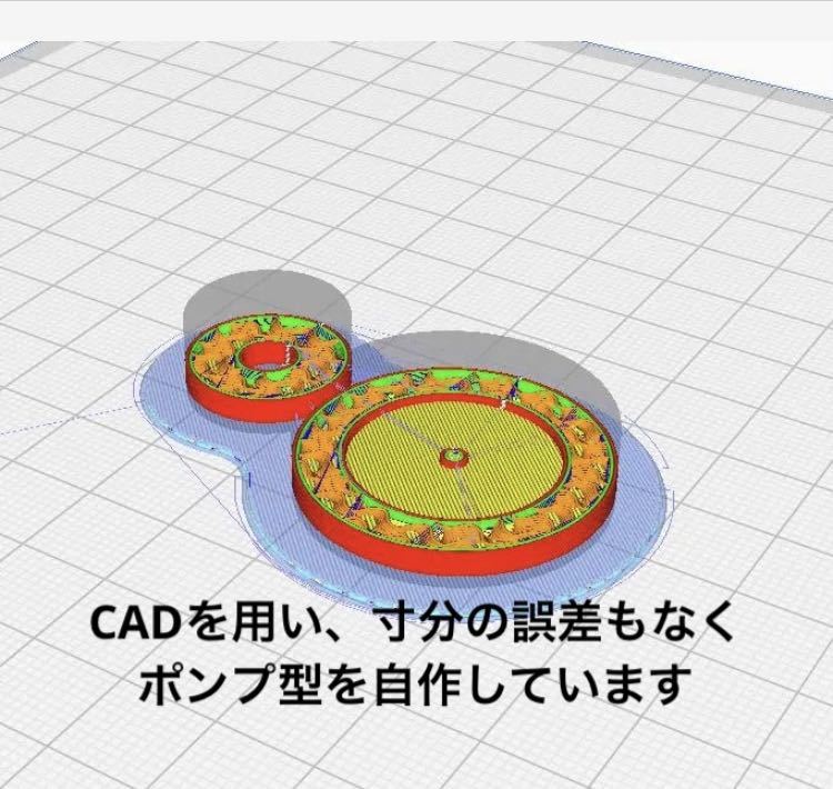 CADデータより型作成しておりますので、これ以上にない精度のポンプカップに仕上がりました。