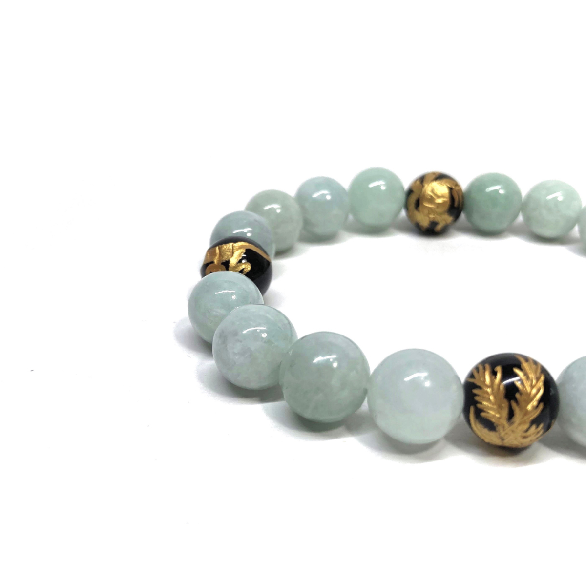10mm 四神獣金彫オニキス×ビルマ翡翠 パワーストーン ブレスレット天然石 運気上昇 開運 幸運 恋愛運 青龍 白虎 玄武 朱雀 ☆