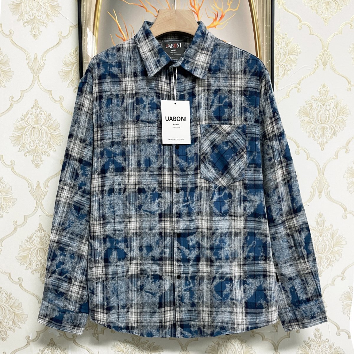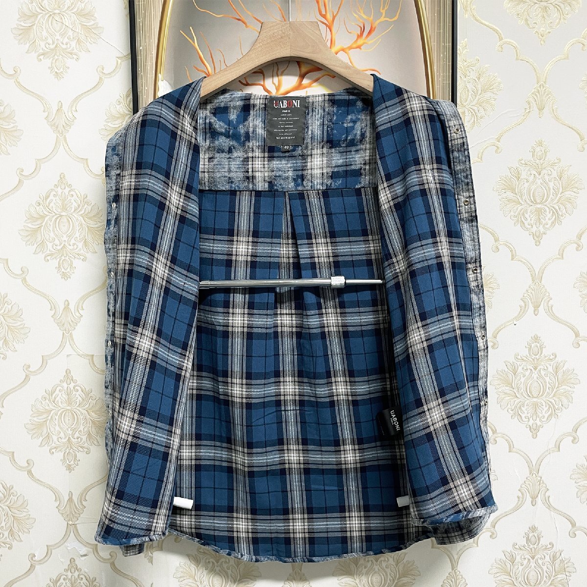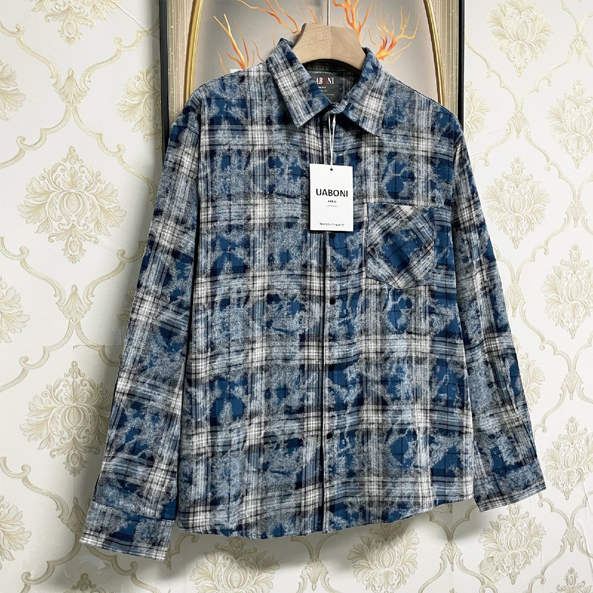 上級EU製&定価4万◆UABONI*Paris*長袖シャツ*ユアボニ*パリ発◆個性 通気 チェック柄 お洒落 ゆったり ストリート アメカジ 通勤 2XL