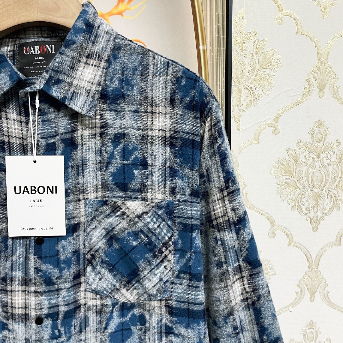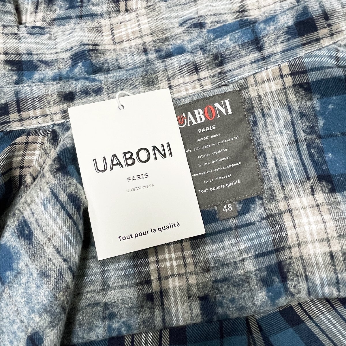 上級EU製&定価4万◆UABONI*Paris*長袖シャツ*ユアボニ*パリ発◆個性 通気 快適 チェック柄 お洒落 ゆったり ストリート アメカジ 通勤 2XL/52サイズ