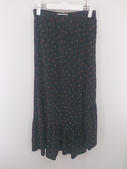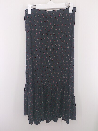 ◇ Mademoiselle ROPE' 花柄 ロング フレア スカート サイズ 38 ブラック レディース E