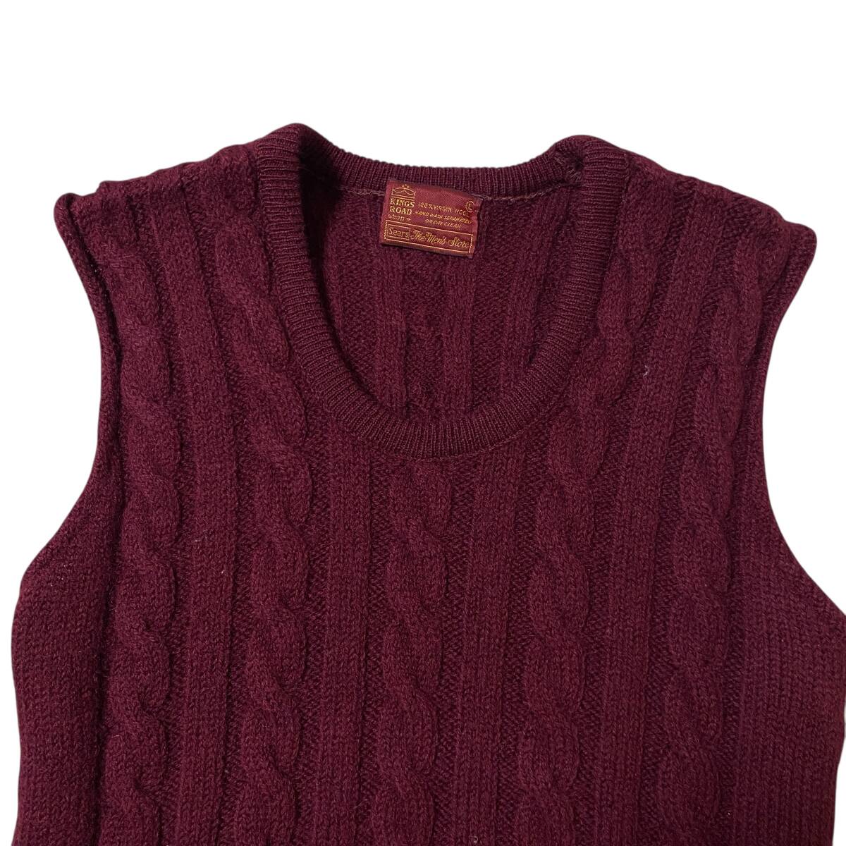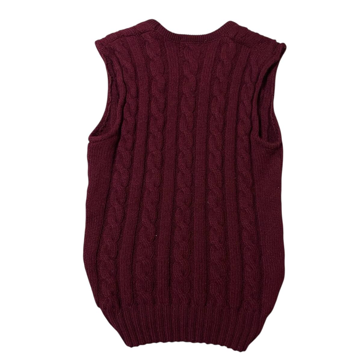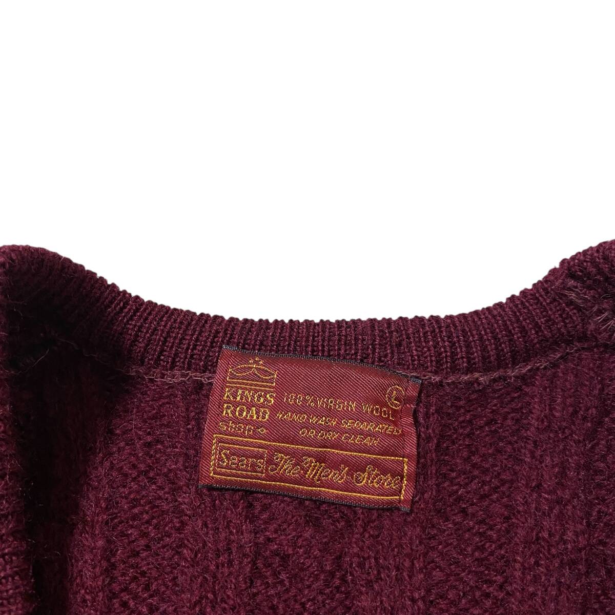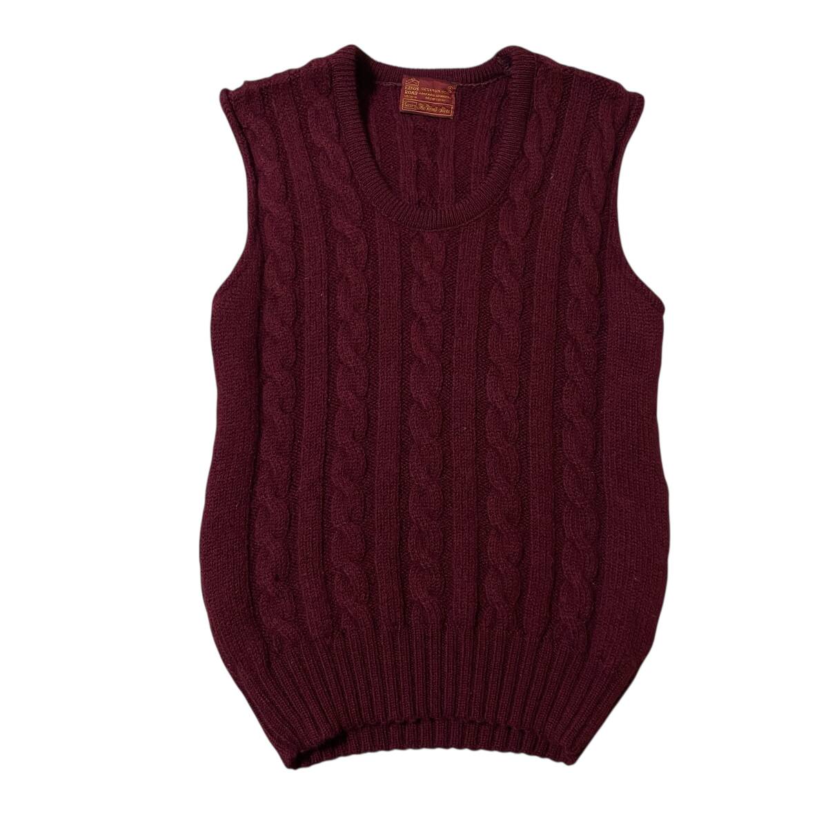 USA 古着 sears 90s ヴィンテージ ケーブルニット ベスト ウール Lサイズ 無地 ワインレッド 【X193】